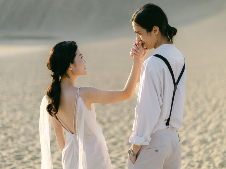 An extraordinary pre-wedding photoshoot experience in the stunning desert of Tottori, Japan. We embarked on a two-hour drive, mesmerized by the picturesque landscapes along the way. Upon reaching the desert, they were greeted by a sense of tranquility and awe as they immersed themselves in the natural beauty of the vast sand dunes. This hidden gem in Tottori provided a peaceful and secluded atmosphere, offering an escape from the chaos of everyday life. I recommend visiting this enchanting desert to witness the wonders of nature firsthand. Through their photos, they aim to convey the peace and beauty they found in this extraordinary place.