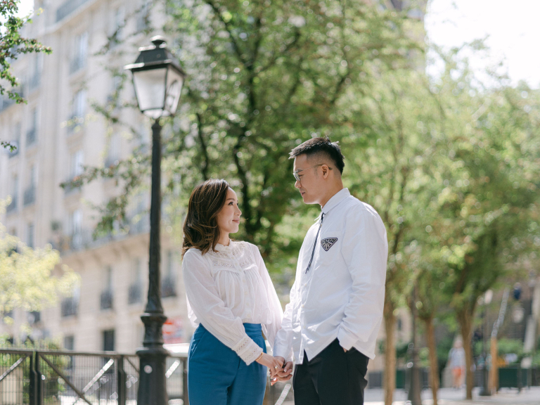 Mandy and Thomas radiated joy and love throughout the photoshoot. Their chemistry was evident, and it was a pleasure to capture their genuine emotions against the stunning Parisian scenery. Whether it was posing by the Seine River or exploring the charming neighborhoods, every location we visited seemed to enhance their love story.