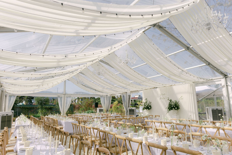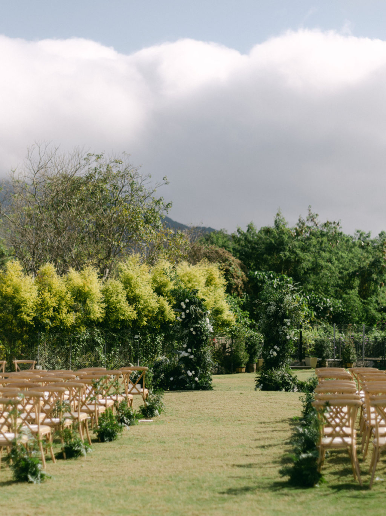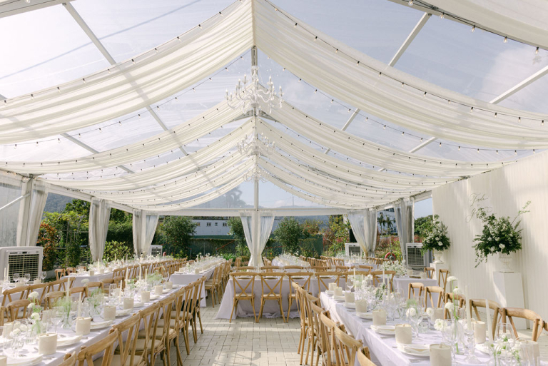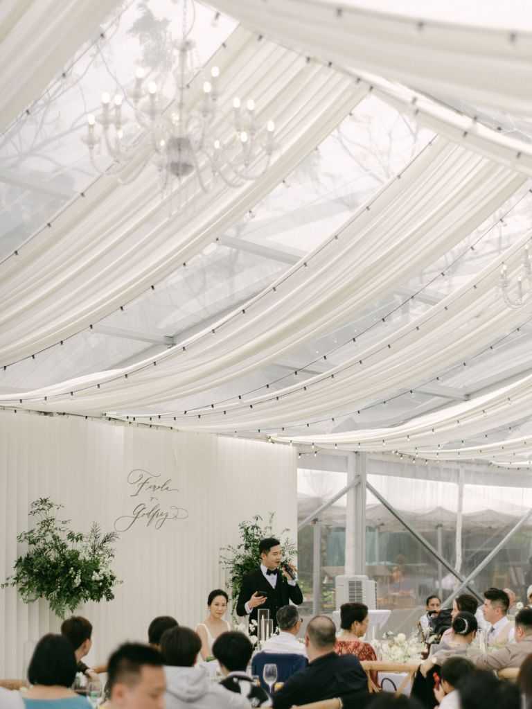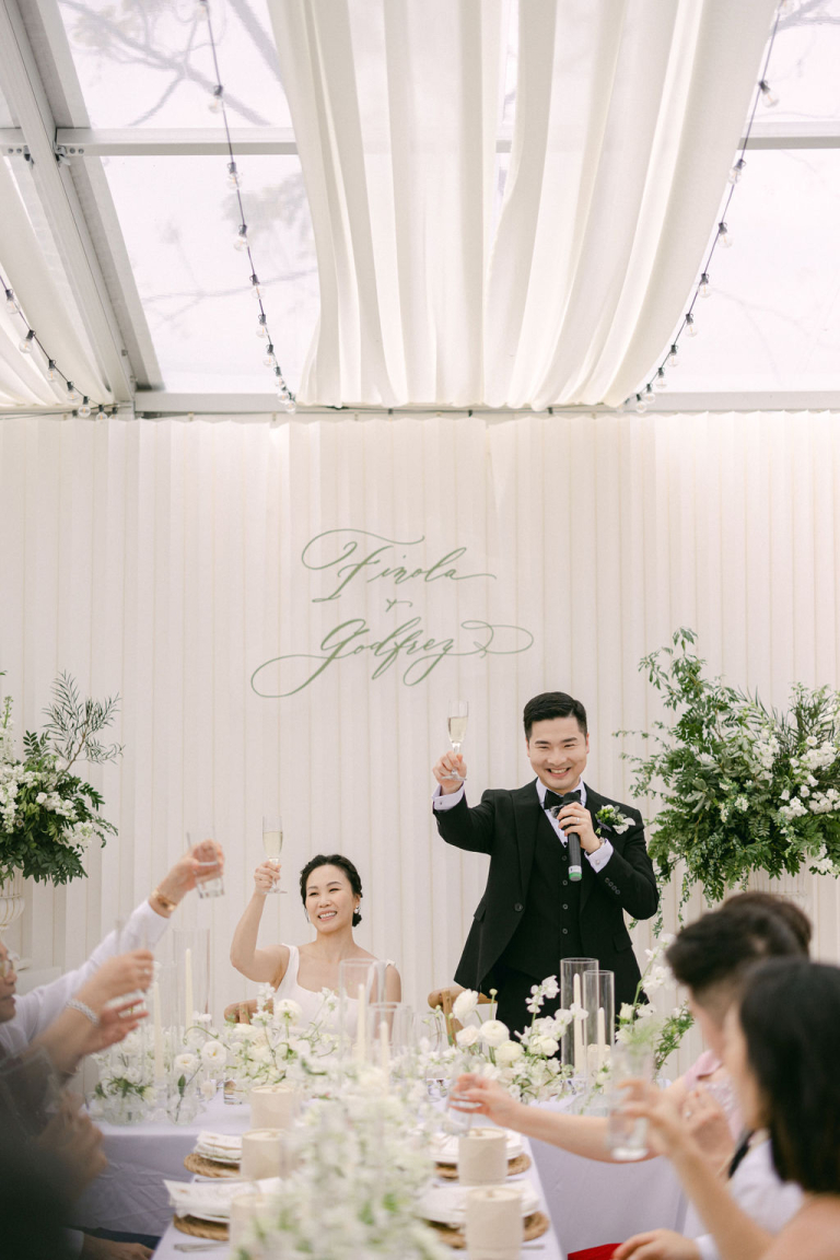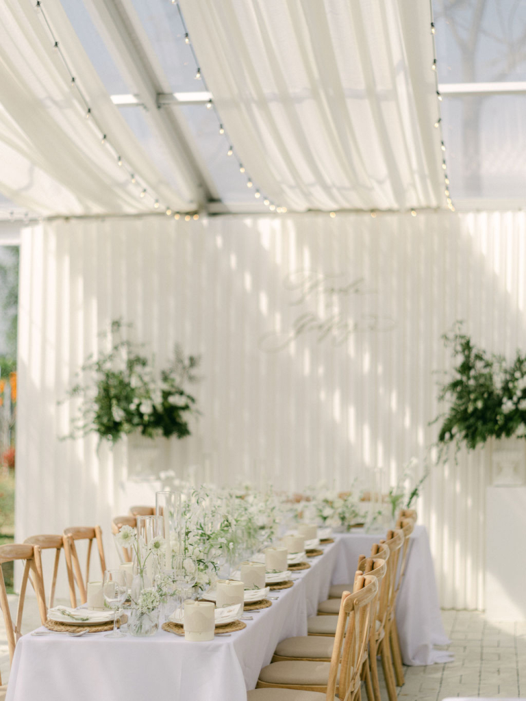 The picturesque setting of the grassy field provided a serene backdrop for the ceremony. Finola and Godfrey looked radiant as they exchanged vows, surrounded by loved ones and the beauty of nature. The white decorations, from floral arrangements to flowing drapes, enhanced the purity and romance of the day.