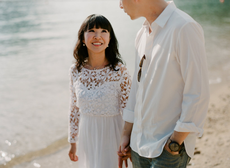 I had the pleasure of capturing beautiful moments for Harriet and William during their photoshoot. We decided to take advantage of the scenic beach setting, with the vast ocean as our backdrop. As I watched them take slow, unhurried steps along the shore, a profound sense of happiness filled the air.
