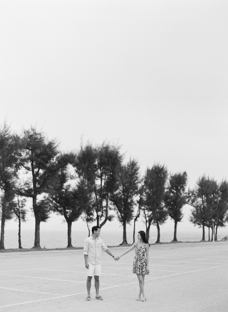 Capturing the pre-wedding moments of Joan and Adrian in a stunning coastal setting. The couple chose to have their shoot by the seaside and on the sandy beach, creating a picturesque backdrop for their love story.