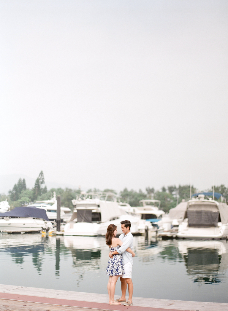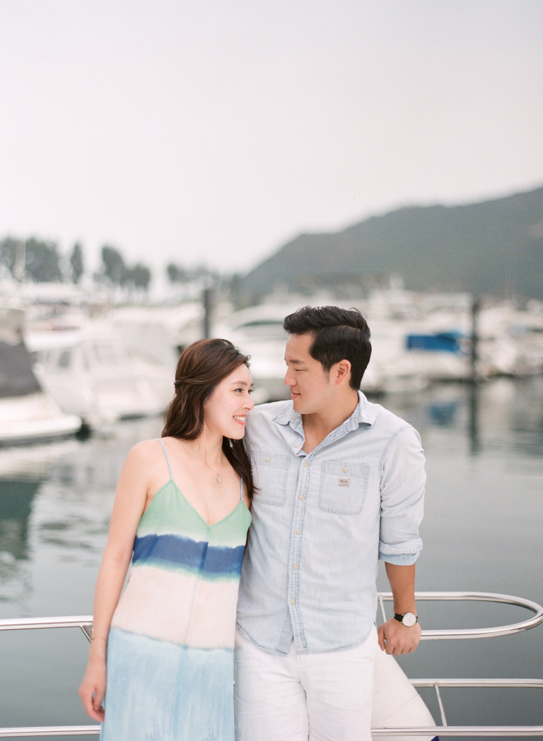 As we positioned ourselves by the water's edge, the vast expanse of the ocean and the sight of luxurious yachts created a mesmerizing and romantic atmosphere. Joan and Adrian's love for each other was beautifully accentuated against the backdrop of the endless blue horizon. The serene and tranquil surroundings perfectly complemented their genuine connection and added a touch of serenity to their pre-wedding photographs.