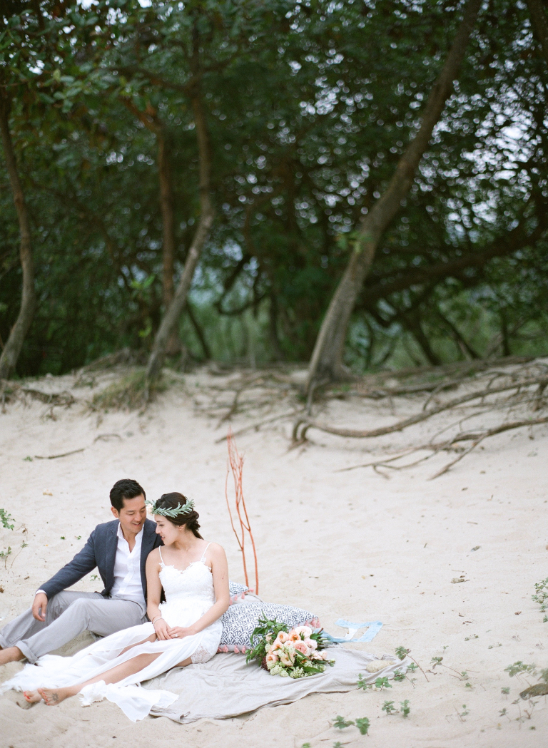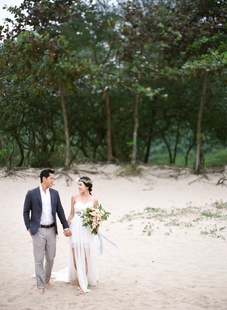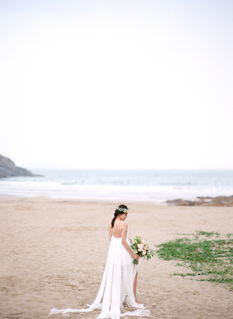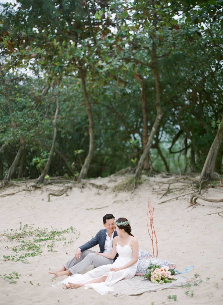 Capturing Joan and Adrian's pre-wedding photographs in such a breathtaking coastal setting was a remarkable experience. The combination of the endless ocean, sandy shore, and Joan's elegant presence created an ethereal ambiance that truly reflected their unique love story.
