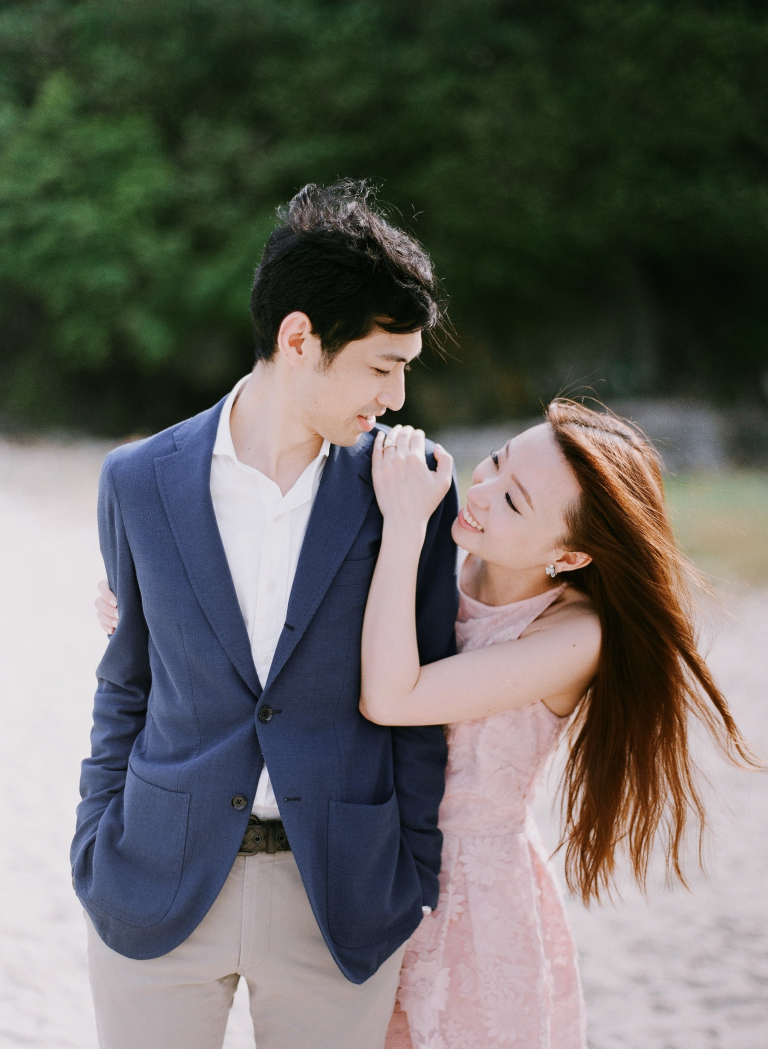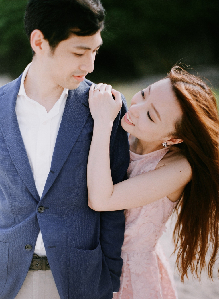 After our time by the beach, we made our way to a lush green meadow surrounded by towering trees. The vibrant shades of green created a picturesque setting, perfect for capturing the couple's love in its purest form. The natural beauty of the surroundings complemented Ruby and Kane's effortless style, resulting in photos that exuded a sense of simplicity and elegance.
