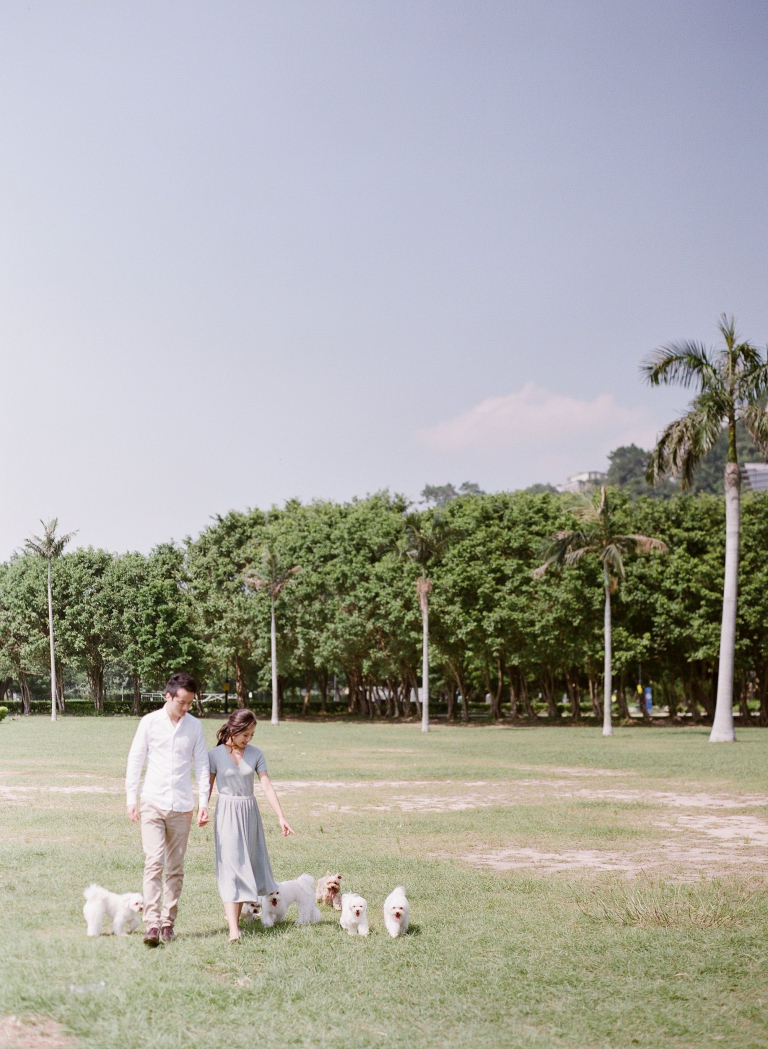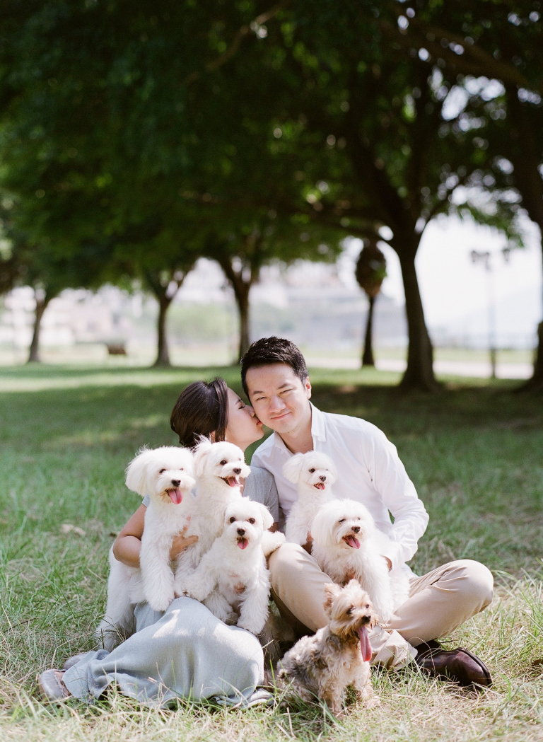Our team had the pleasure of assisting Angie and Ronald in capturing their prewedding moments. The setting was a picturesque grassy field where the couple, accompanied by their six adorable dogs, posed for enchanting photos. It was a unique and heartwarming experience to see them interact with their furry companions, showcasing their love and affection not only for each other but also for their beloved pets.
