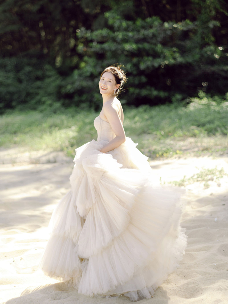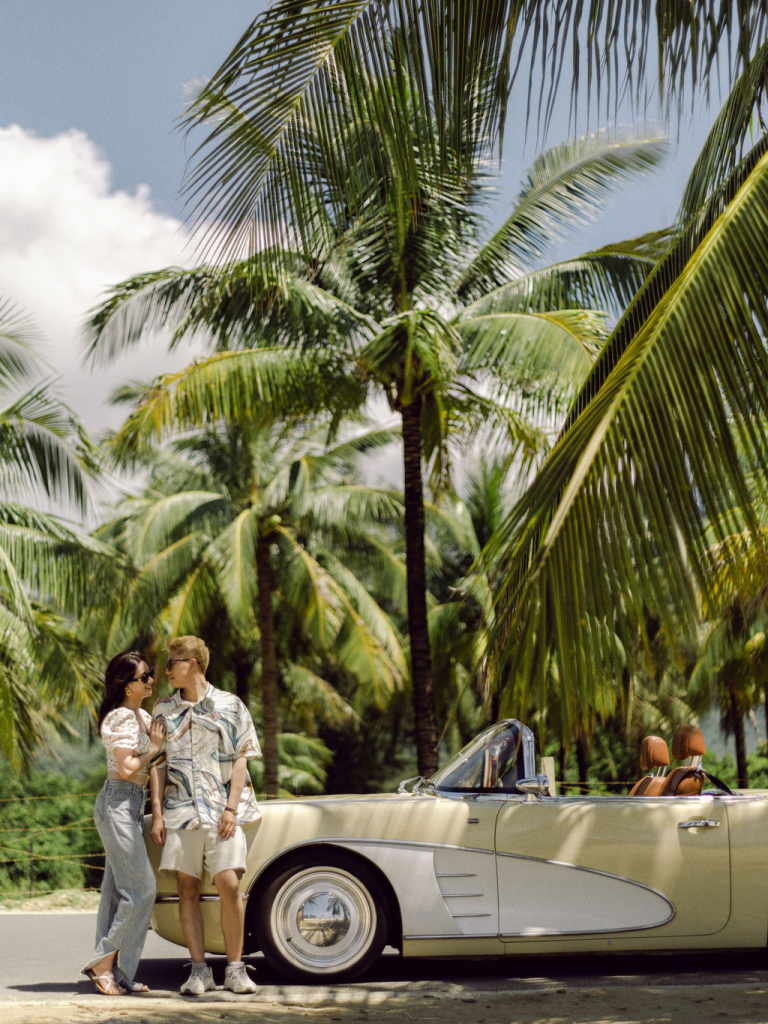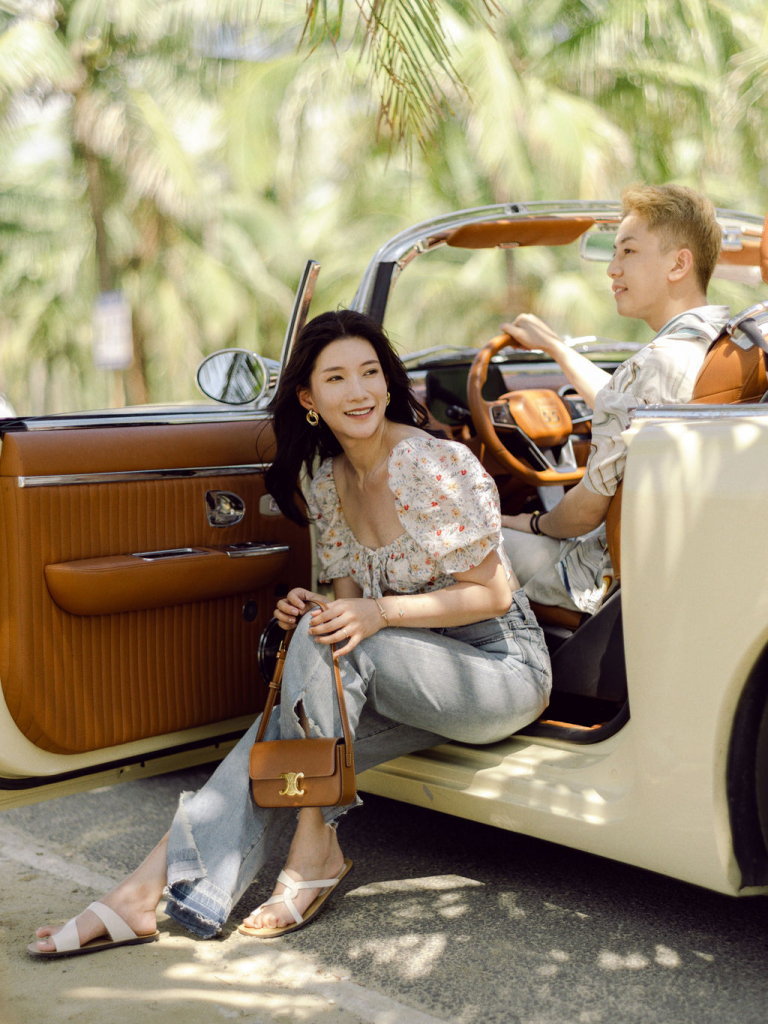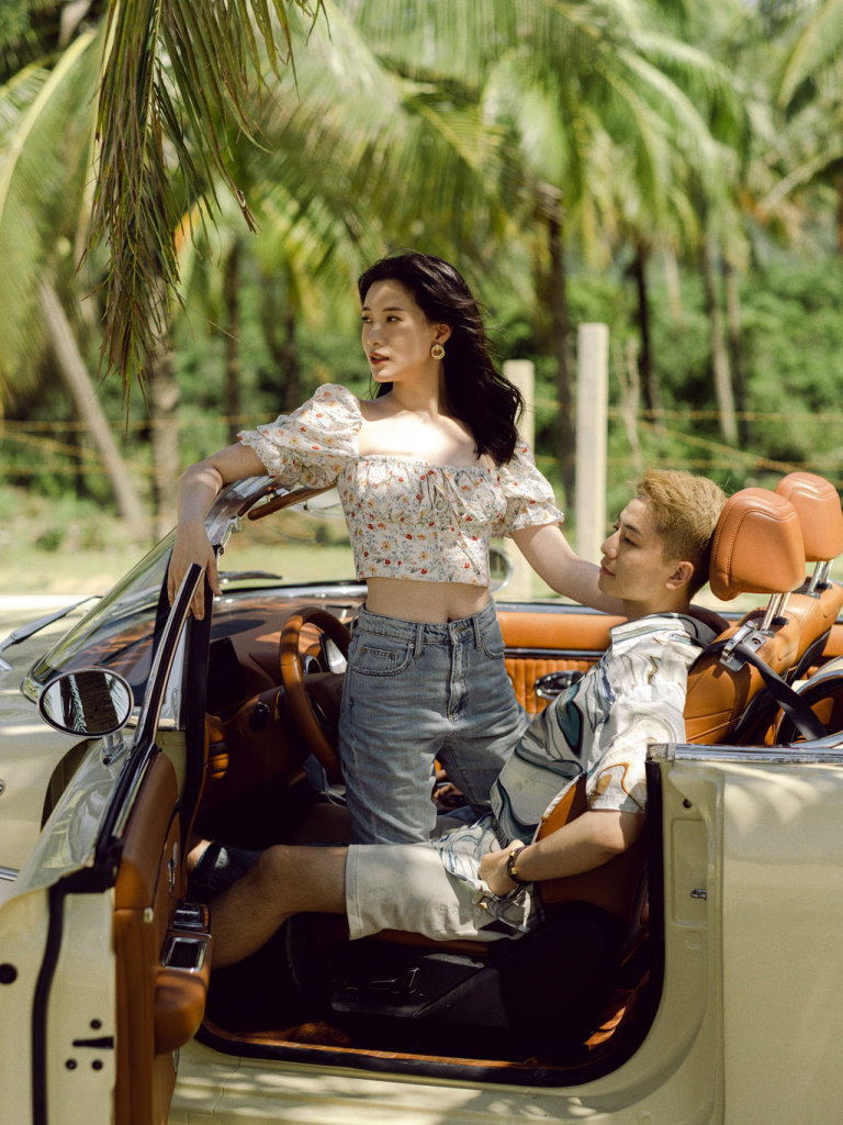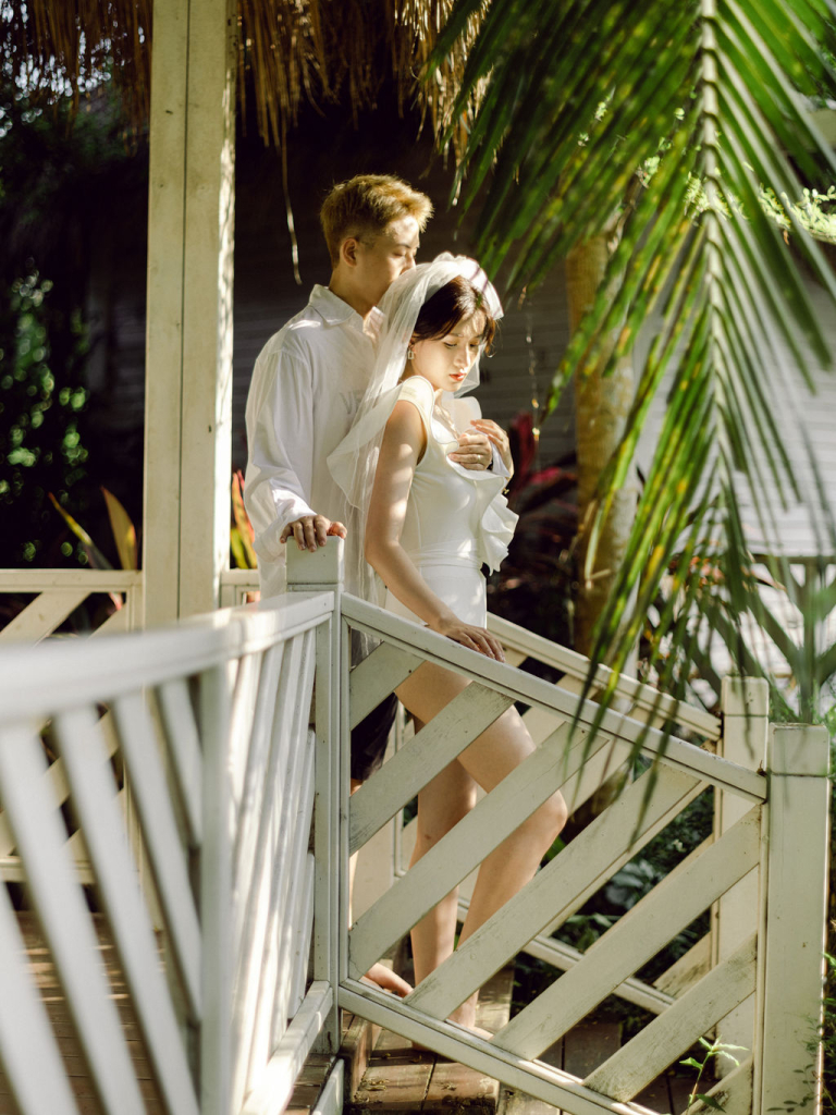Next, we moved to a luxurious villa with a sparkling swimming pool. The modern architecture and clear blue water provided a striking contrast to the beach scenery. We captured some breathtaking shots as Mei Jie and San Tu enjoyed the poolside atmosphere. The villa’s stylish surroundings added a touch of glamour to their photos, enhancing the overall aesthetic of the shoot.