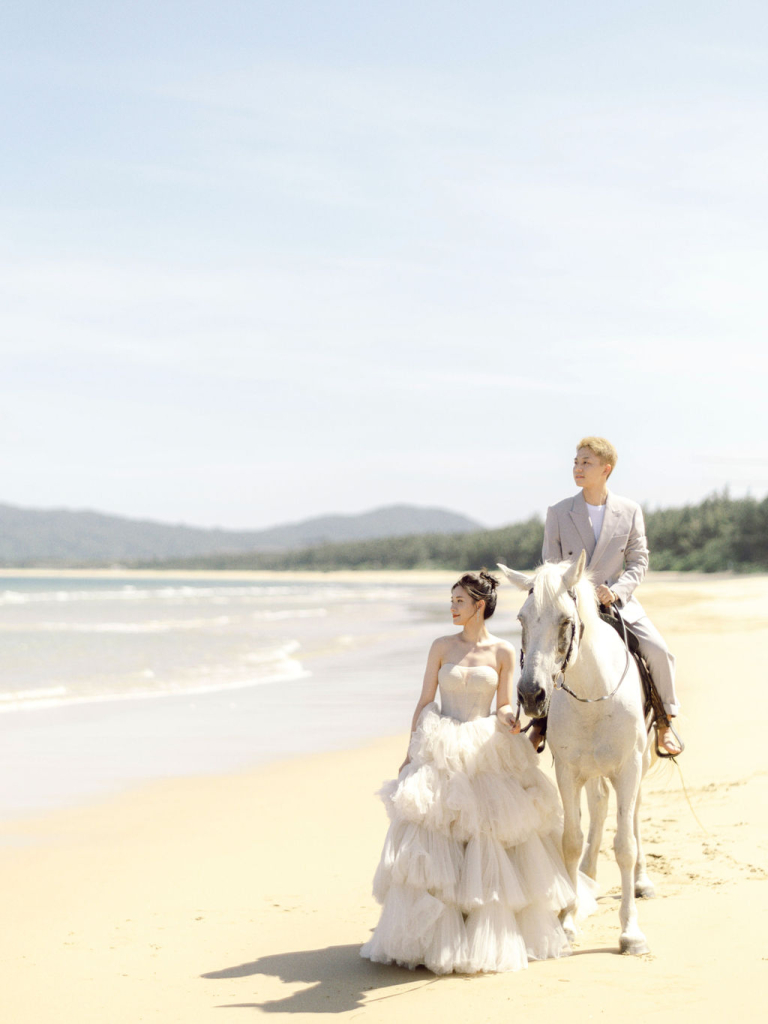 Our final destination was a wooded area where we had rented a horse for the photoshoot. The lush greenery and the presence of the majestic horse added a sense of adventure and fairy-tale charm to the pictures. Mei Jie and San Tu’s chemistry was evident as they interacted with the horse, resulting in some truly magical moments. The diverse locations and their natural connection made for a memorable and enchanting pre-wedding photoshoot.