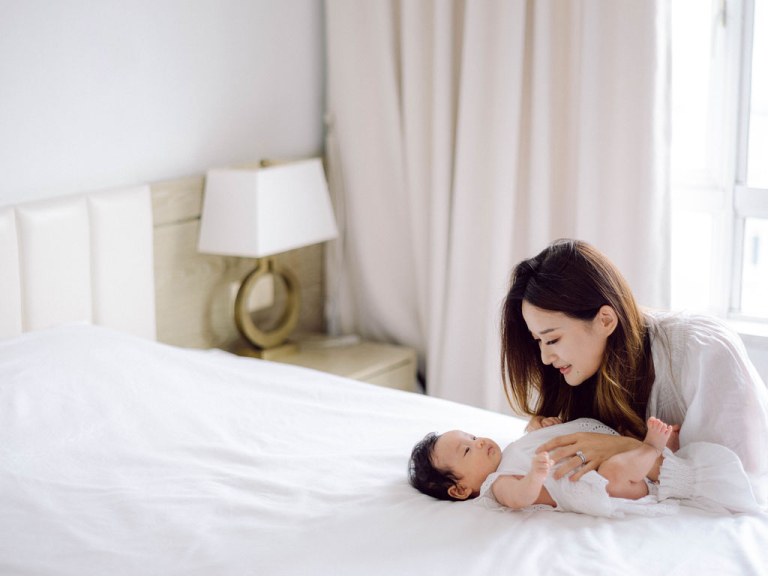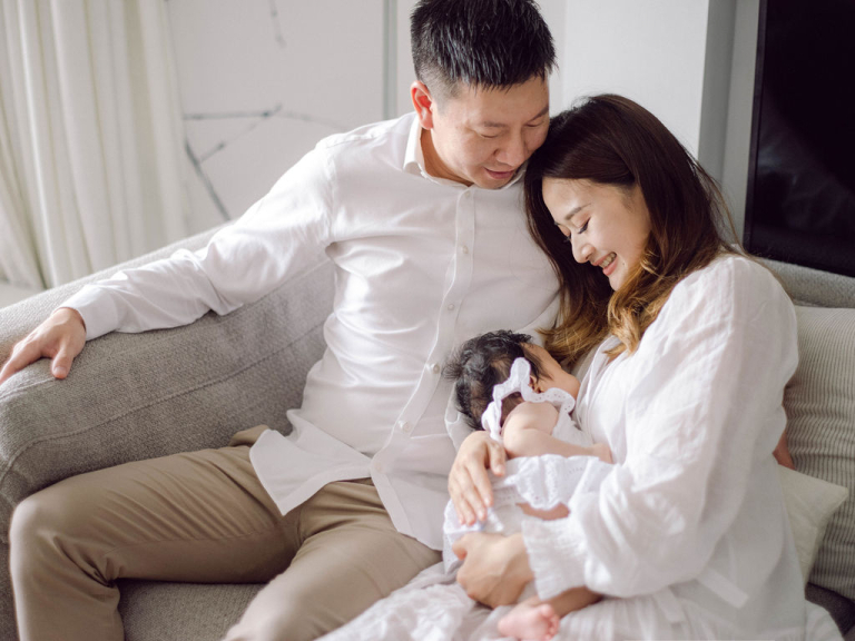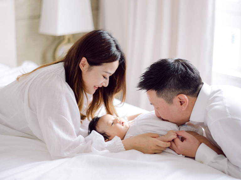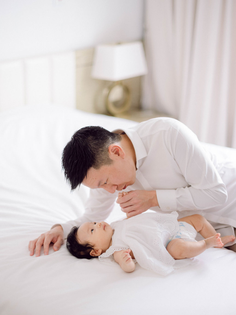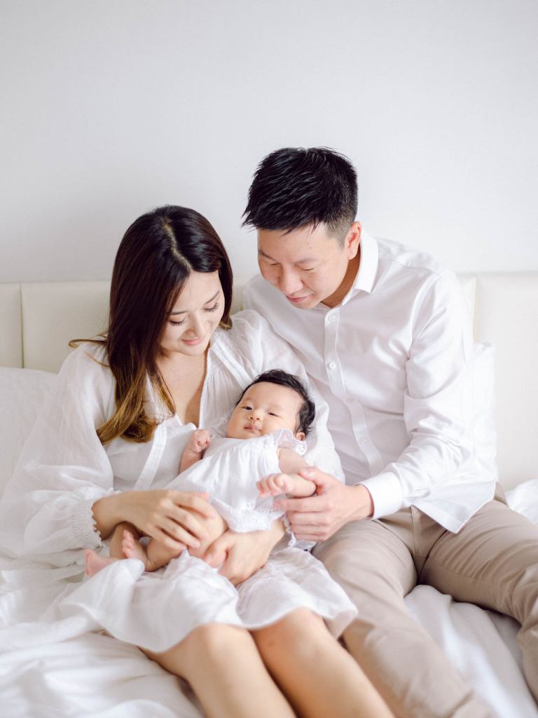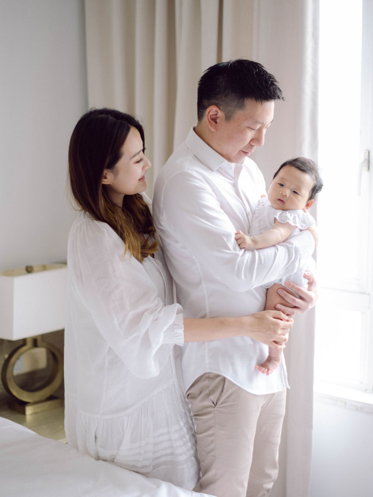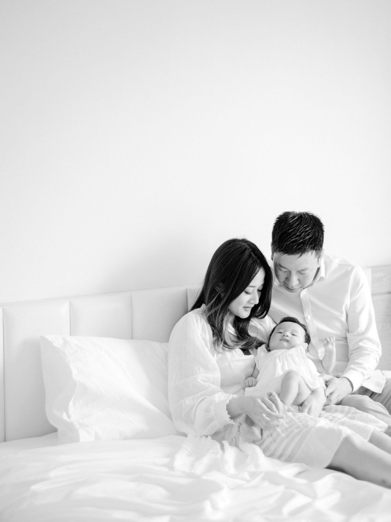My team and I had the delightful opportunity to photograph Rosa and John's family. They have a precious baby girl who brought so much joy to the session. We chose to conduct the photo shoot indoors, setting up in a comfortable and cozy bedroom that provided the perfect backdrop for capturing their intimate moments.