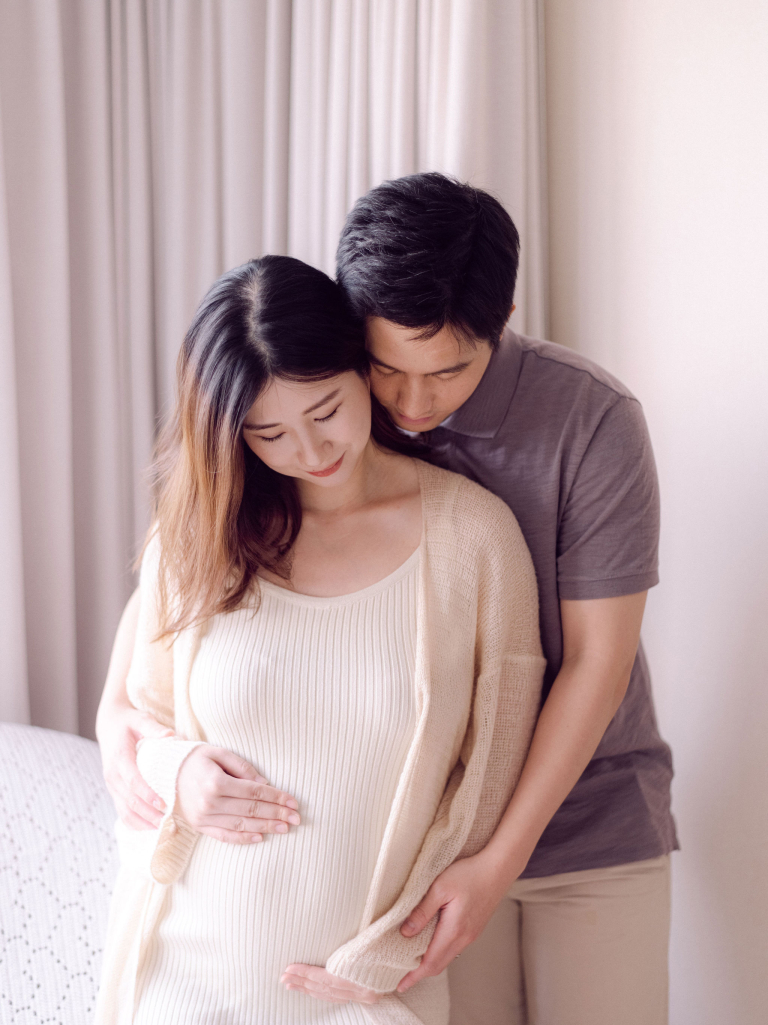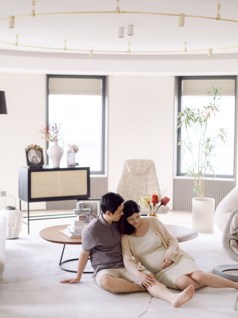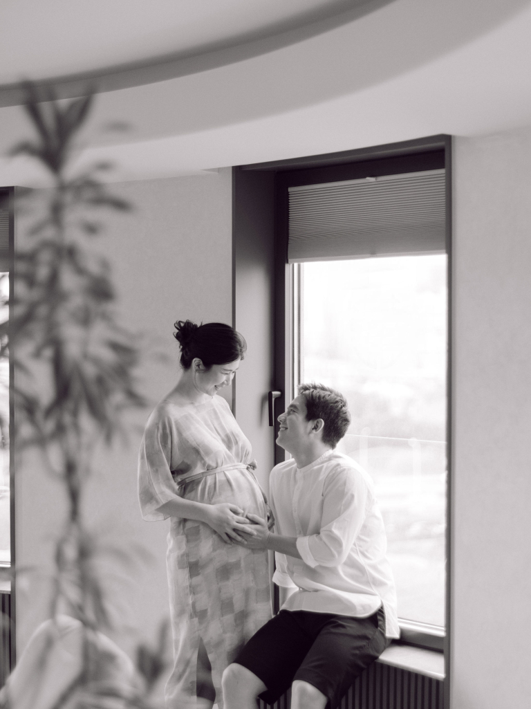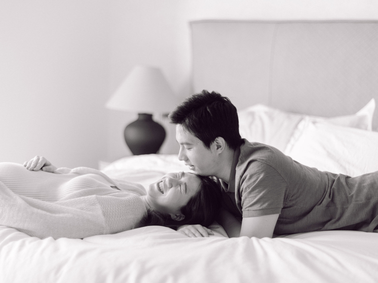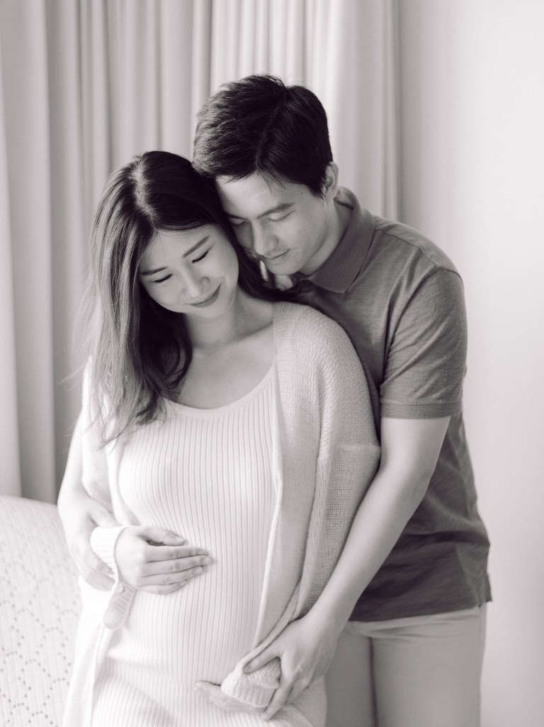 In addition to the bedroom shots, we also used various parts of their home as backdrops. This added a personal touch to the photos, capturing the essence of their everyday life. The session was filled with warmth and connection, making it a memorable experience for everyone involved. The images will serve as beautiful reminders of this precious time as they prepare to welcome their new baby.