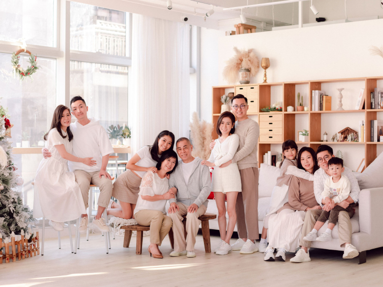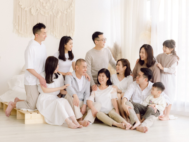 To conclude the session, we gathered everyone together for a full family portrait. The entire family sat together, smiling and laughing, creating a heartwarming and memorable scene. The final group photo perfectly captured the closeness and joy shared by Sara's family. The entire experience was filled with warmth and affection, resulting in beautiful images that reflect the strong bonds within this loving family. It was a true pleasure to document these special moments for them.