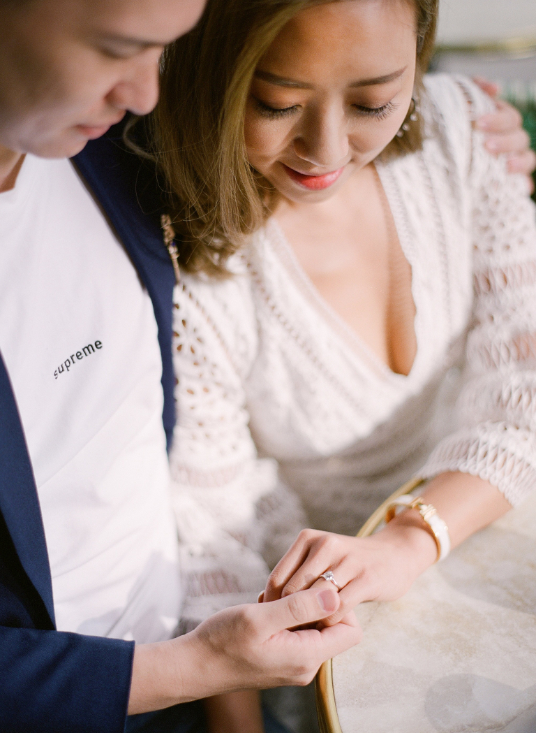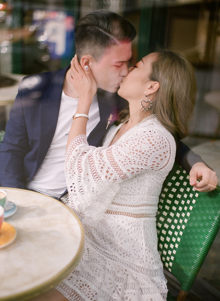 Following our intimate indoor session, we ventured out to a nearby café, seeking to encapsulate the essence of Parisian charm and spontaneity. Amidst the bustling streets and aromatic wafts of freshly brewed coffee, Erica and Gerald reveled in each other's company, their laughter dancing on the breeze as we captured their effervescent spirits in a flurry of candid snapshots.