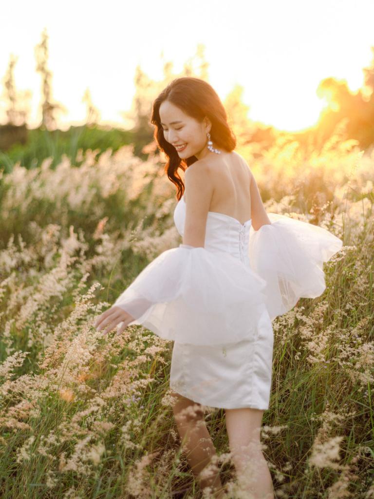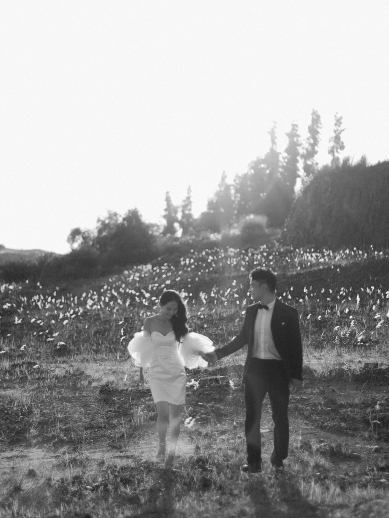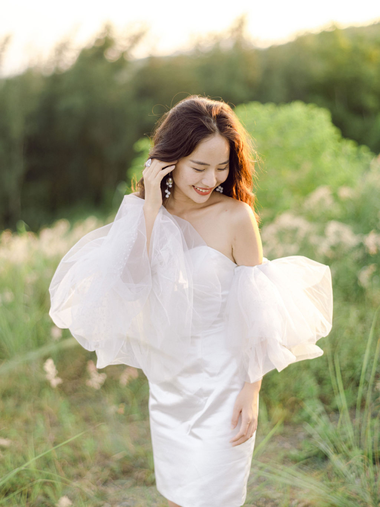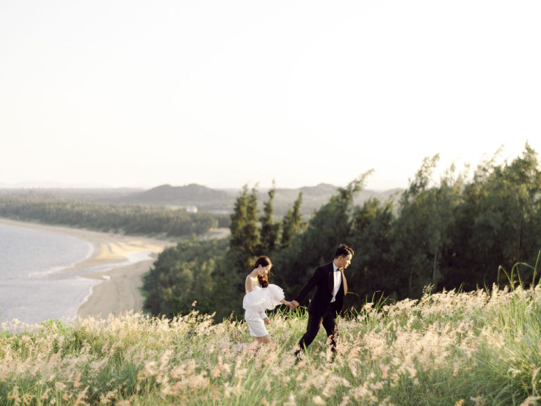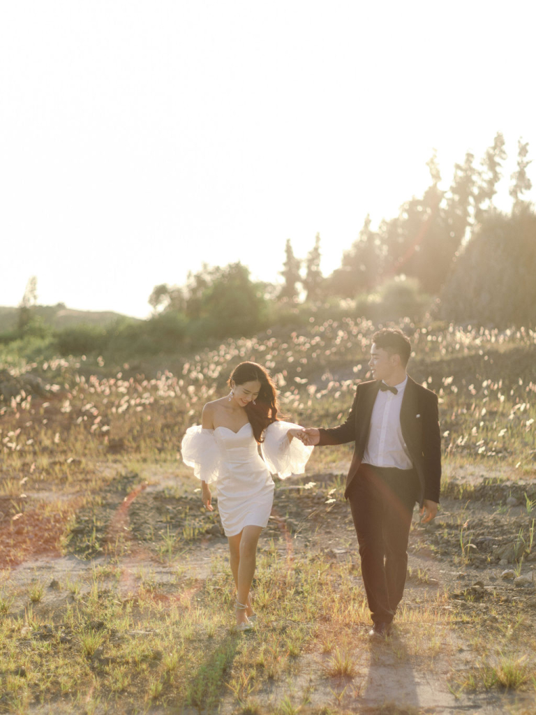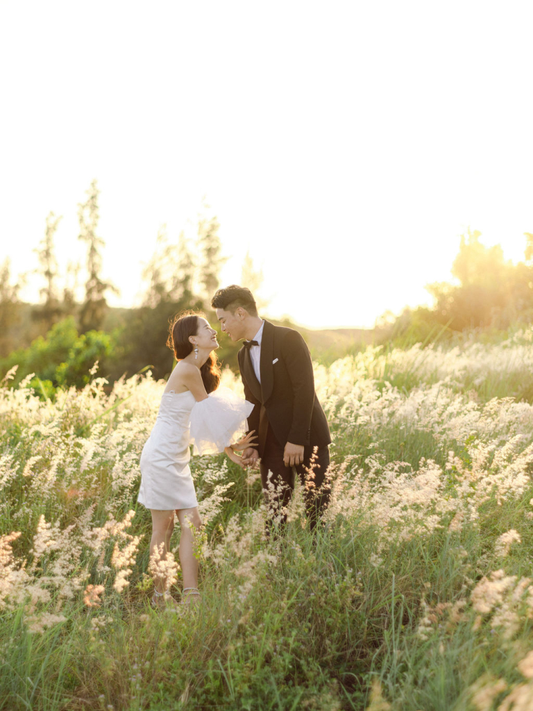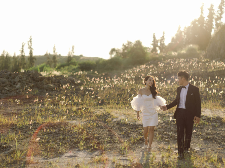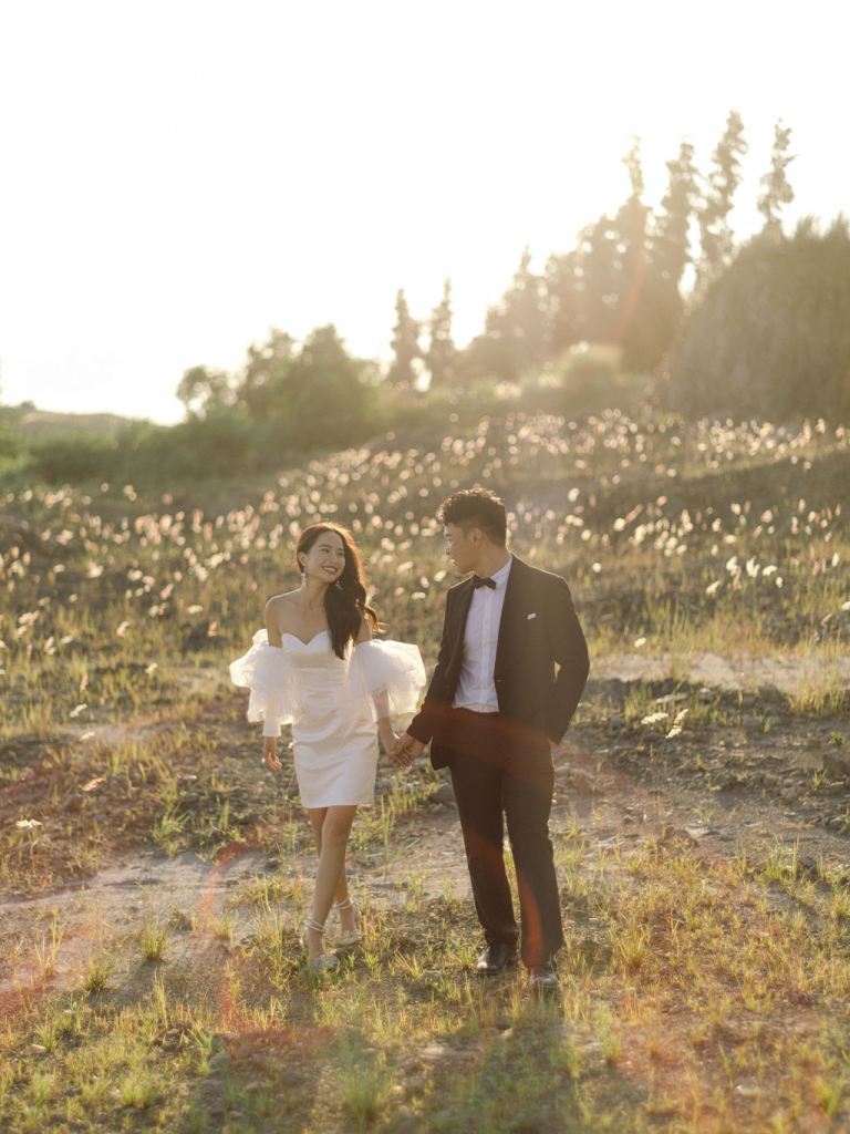 My team and I had the joy of photographing Amy and Brian's pre-wedding shoot. We began our day in a stunning outdoor location, surrounded by lush green meadows that provided a perfect natural backdrop. The fresh morning air and expansive fields set a serene tone as we captured the couple's relaxed and happy moments, reflecting their deep affection and joy.