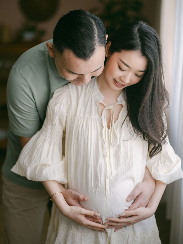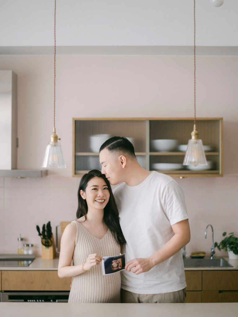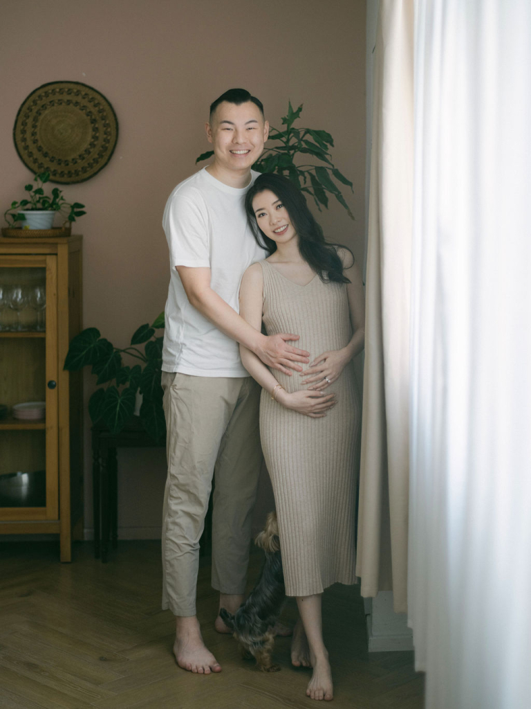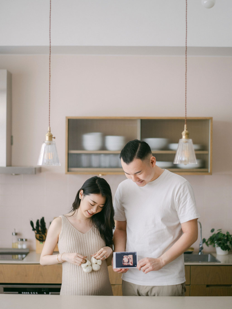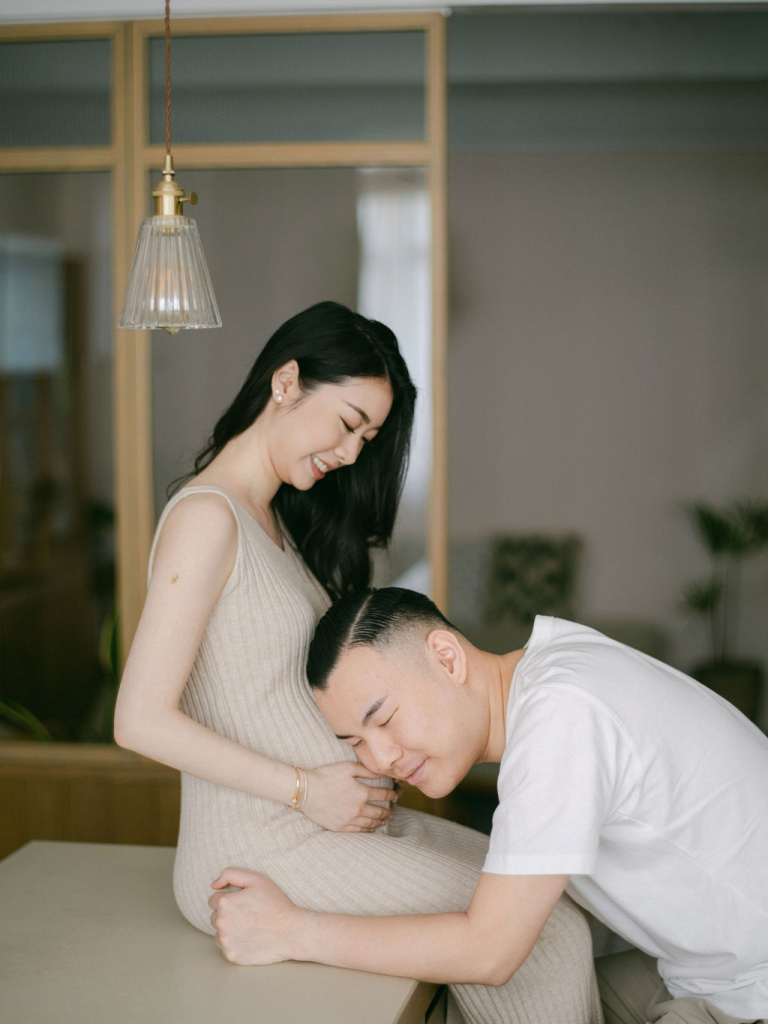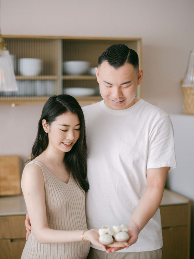 My team and I had the pleasure of photographing Karen, Alan, and their unborn daughter Thea for a family portrait. Though their daughter has yet to be born, they already know she is a girl through an ultrasound. In anticipation of her arrival, they purchased a pair of adorable baby shoes, symbolizing their love and excitement for their little one. Throughout the session, their warmth and affection for each other were evident, with Alan doting on his wife with great care.