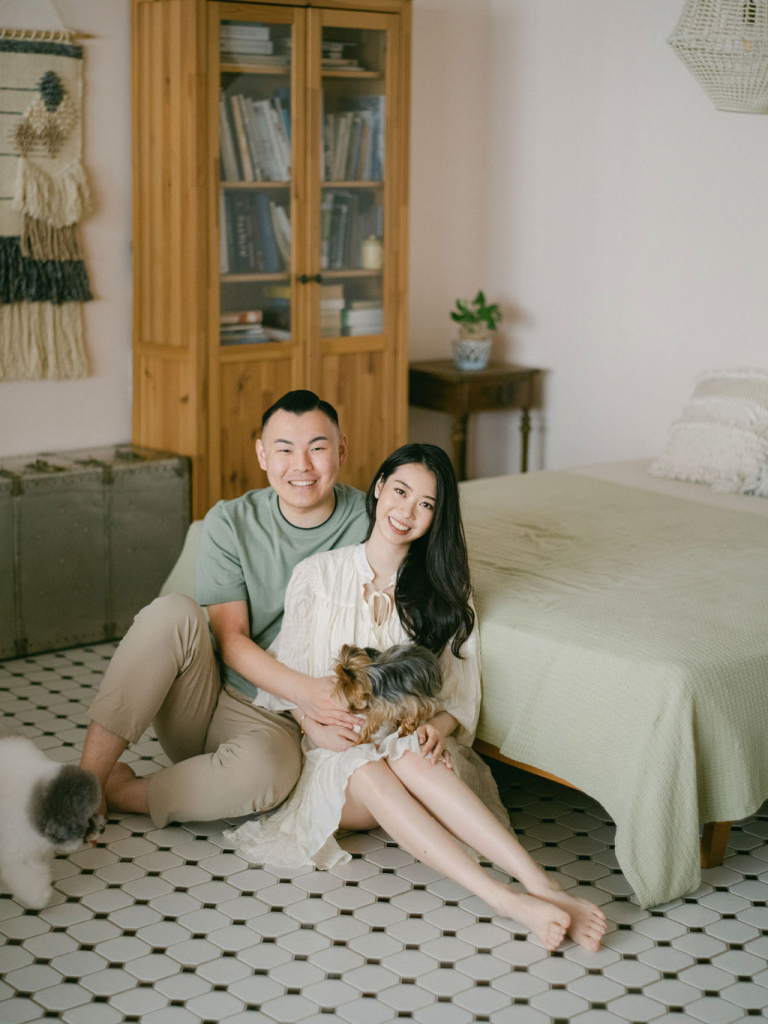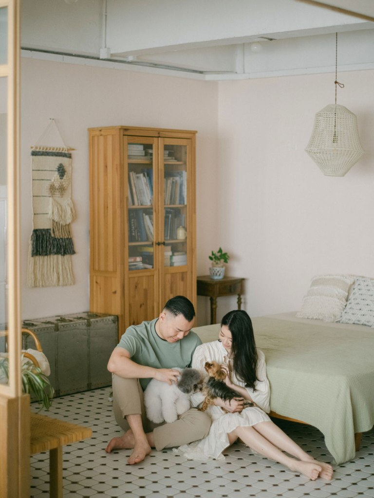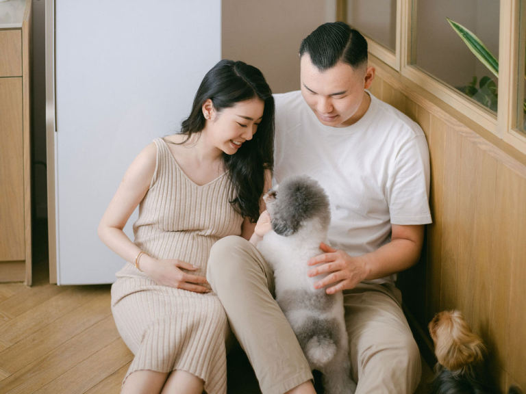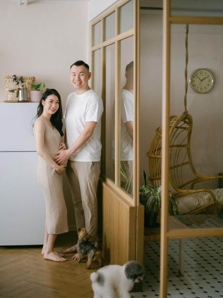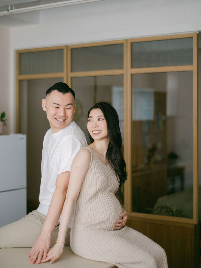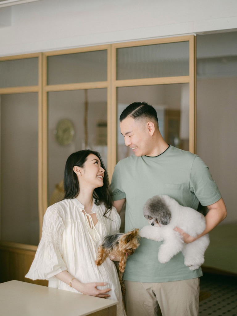 My team and I had the pleasure of photographing Karen, Alan, and their unborn daughter Thea for a family portrait. Though their daughter has yet to be born, they already know she is a girl through an ultrasound. In anticipation of her arrival, they purchased a pair of adorable baby shoes, symbolizing their love and excitement for their little one. Throughout the session, their warmth and affection for each other were evident, with Alan doting on his wife with great care.