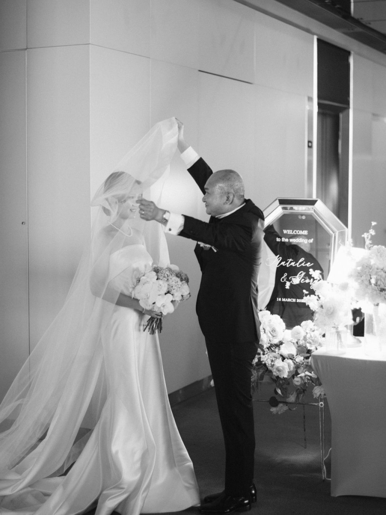 Capturing the wedding moments of Natalie and George - Their special day was filled with love and celebration, held at the luxurious Four Seasons Hotel. The wedding ceremony took place at the iconic Sky100, offering breathtaking views of the city skyline.