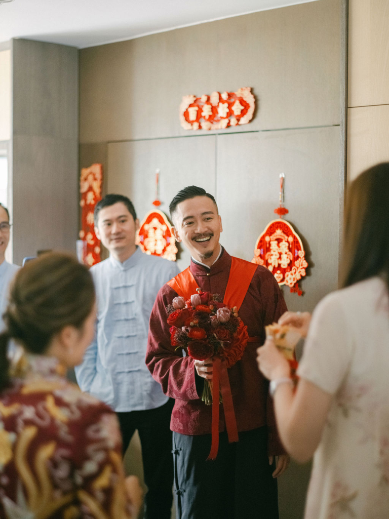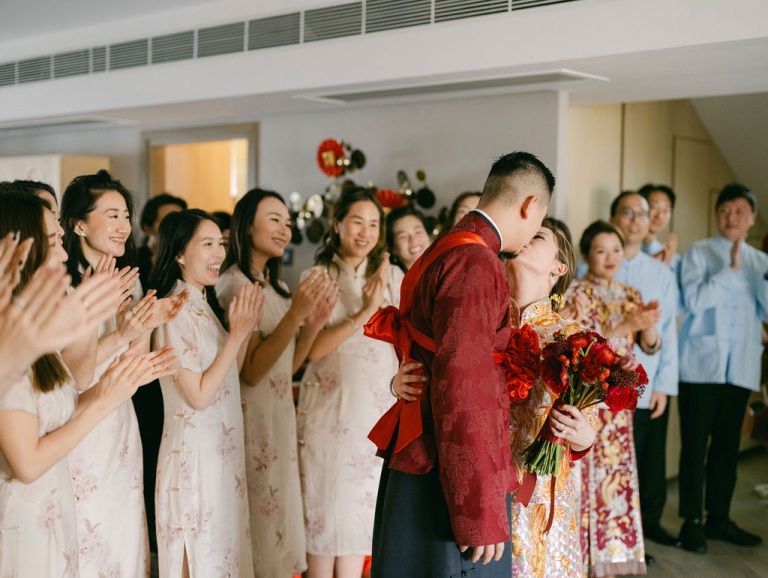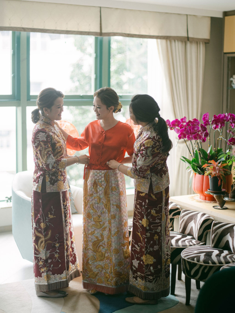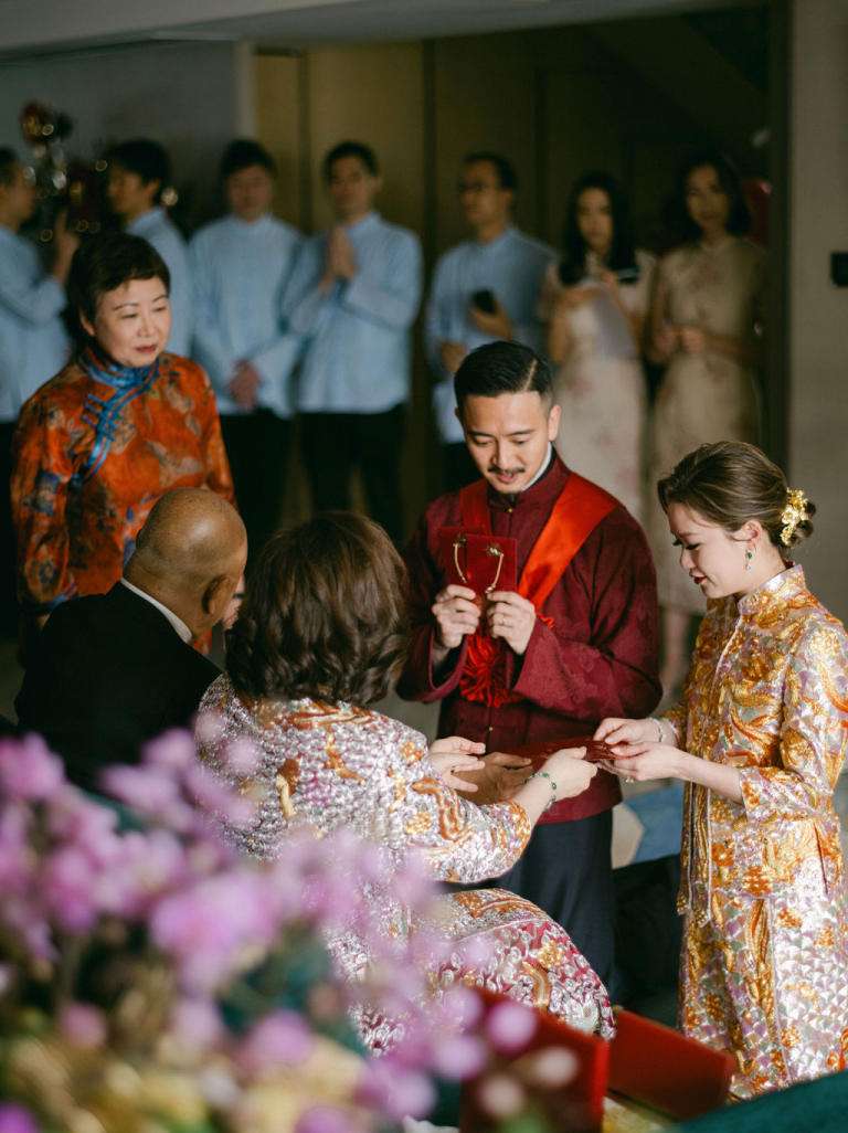 My team and I had the pleasure of photographing Pearl and Alan's wedding, which took place at the luxurious Four Seasons Hotel in Hong Kong. The day was filled with memorable moments, starting with the traditional tea ceremony in the morning. During this time, all the female family members, including the bride, dressed in exquisite qipaos, adding a touch of elegance to the occasion. Alan was a dashing groom, matching Pearl's beauty and grace perfectly.