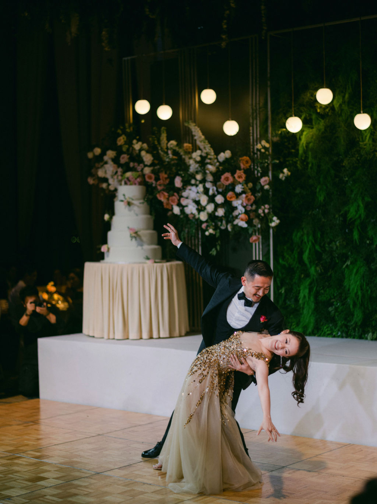 During the evening reception, Pearl and Alan surprised their guests with an elegant dance performance. The couple glided across the dance floor, showcasing their grace and poise. The guests were captivated by their synchronized movements and applauded with enthusiasm, showing their admiration and support for the newlyweds.