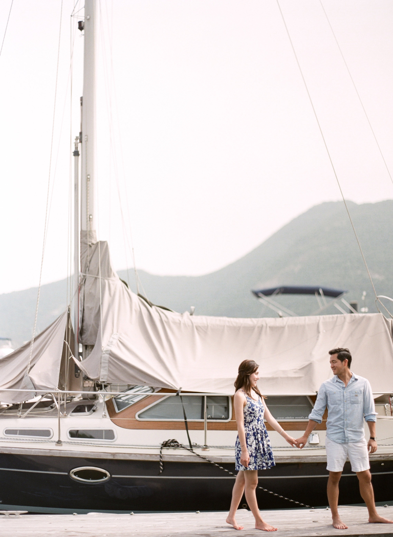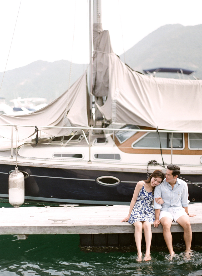 As we positioned ourselves by the water's edge, the vast expanse of the ocean and the sight of luxurious yachts created a mesmerizing and romantic atmosphere. Joan and Adrian's love for each other was beautifully accentuated against the backdrop of the endless blue horizon. The serene and tranquil surroundings perfectly complemented their genuine connection and added a touch of serenity to their pre-wedding photographs.