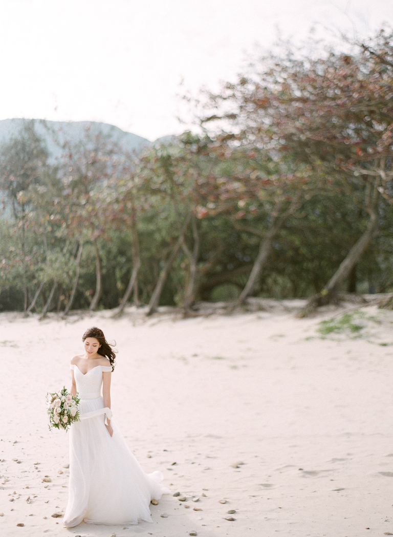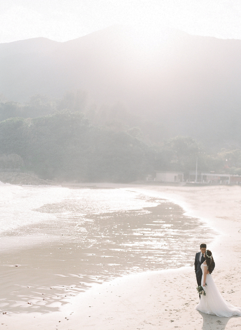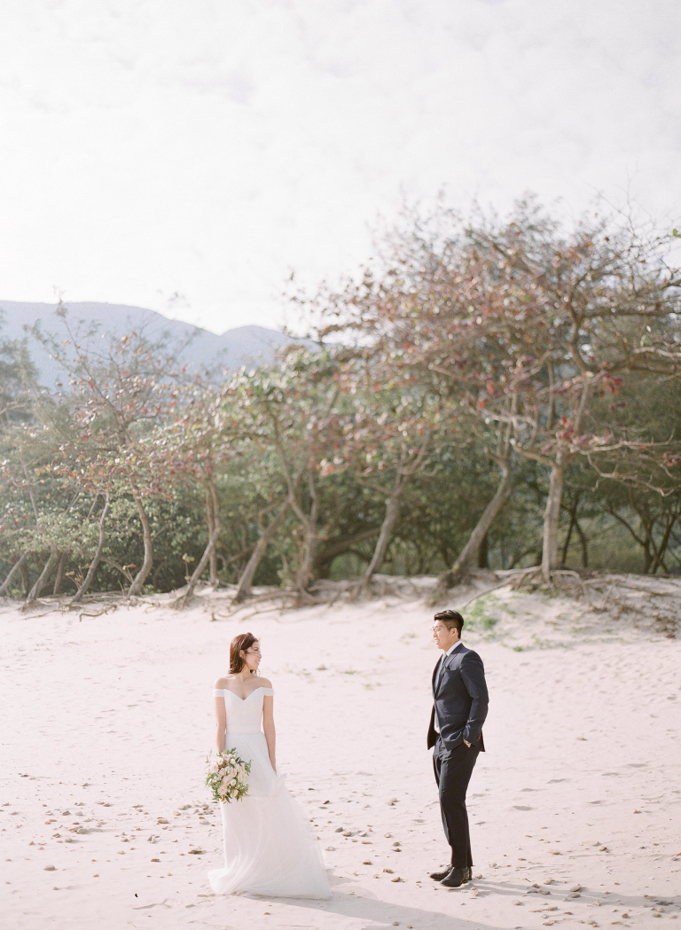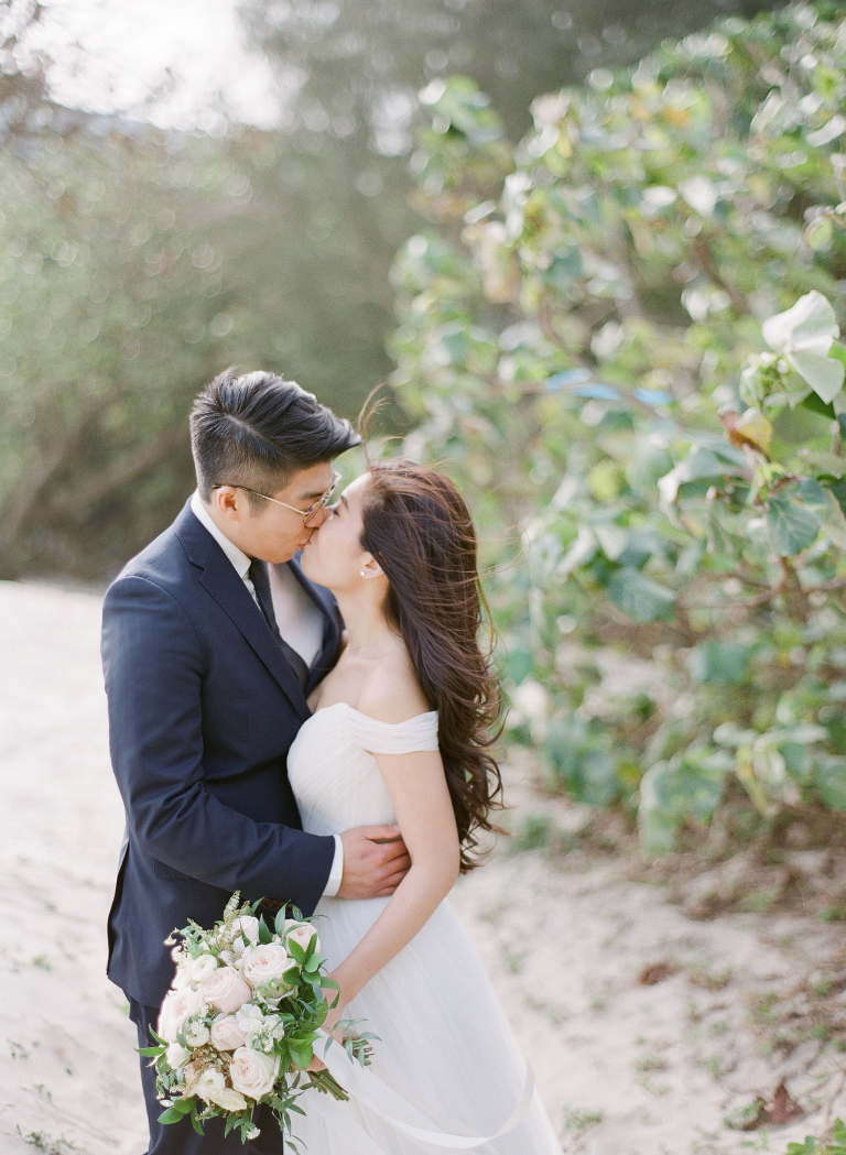 Tim, by Tammy's side, radiated love and admiration. Against the backdrop of the boundless sea, their connection and affection for each other were beautifully captured. The beach setting added a sense of tranquility and serenity to their pre-wedding photographs, perfectly reflecting their love and the peacefulness they found in each other's embrace.