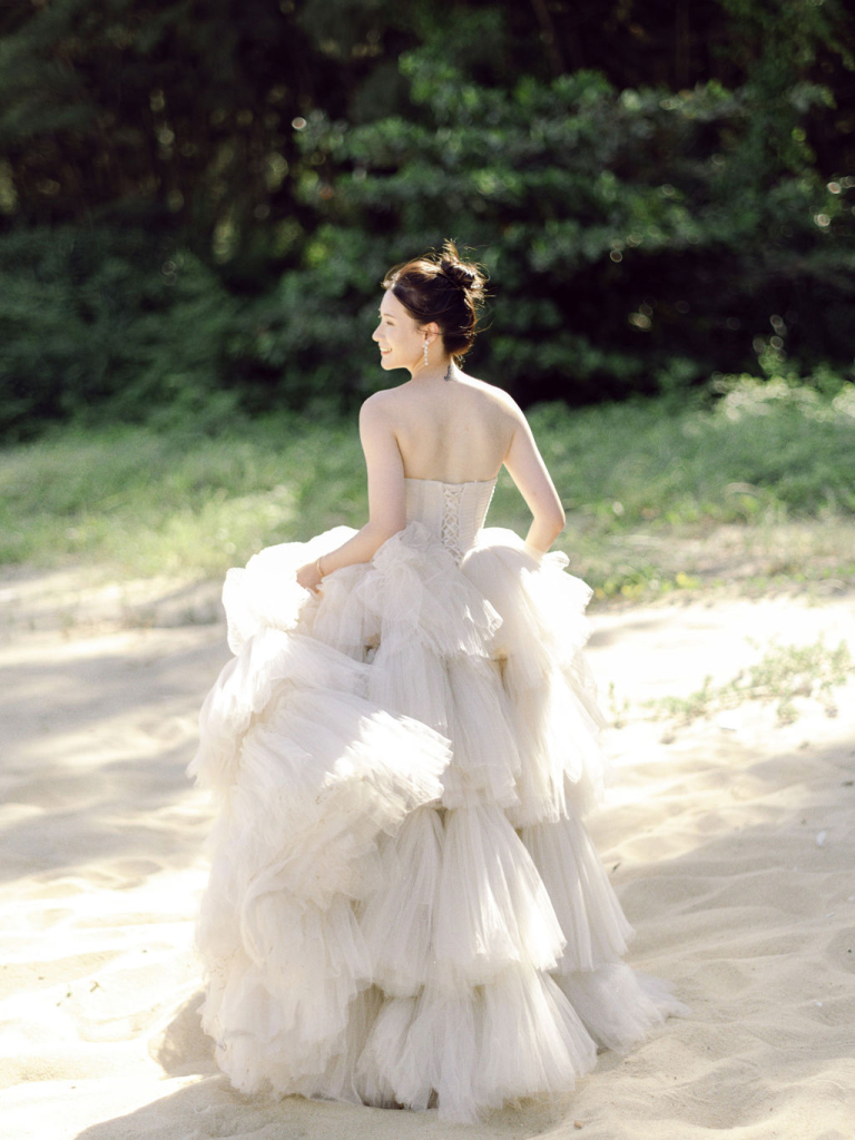 Next, we moved to a luxurious villa with a sparkling swimming pool. The modern architecture and clear blue water provided a striking contrast to the beach scenery. We captured some breathtaking shots as Mei Jie and San Tu enjoyed the poolside atmosphere. The villa’s stylish surroundings added a touch of glamour to their photos, enhancing the overall aesthetic of the shoot.