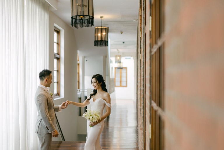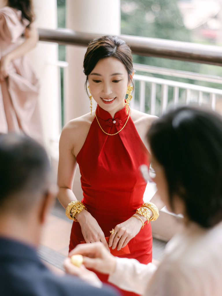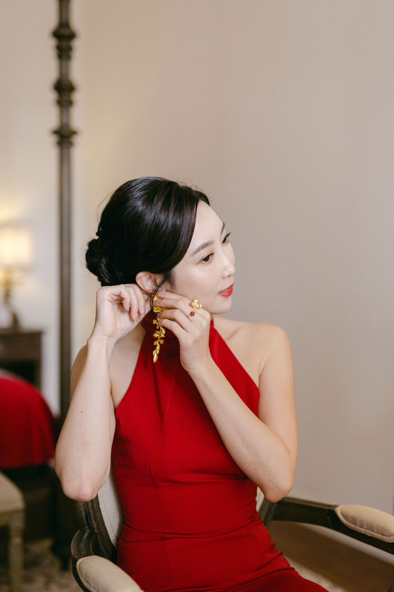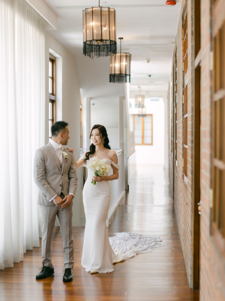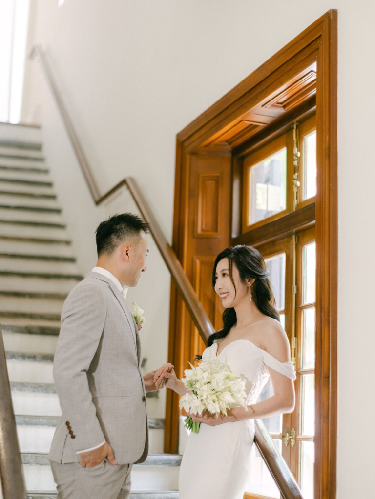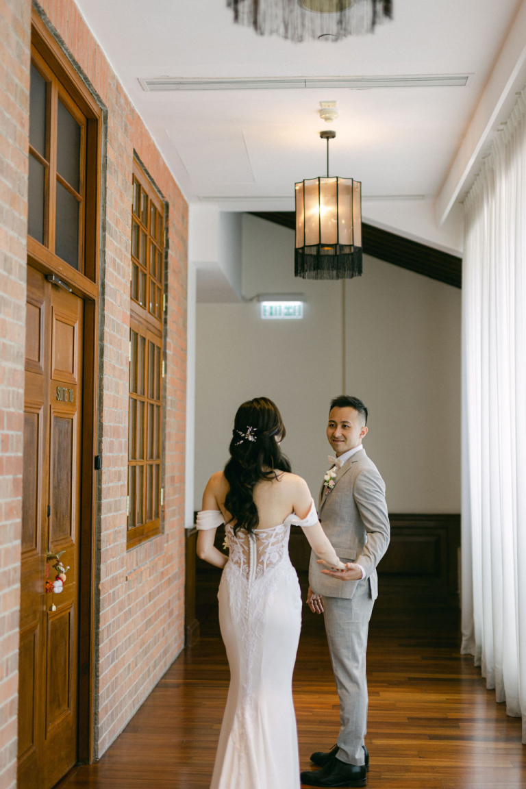 Following the tea ceremony, we moved on to the couple's first look. The anticipation and joy on their faces were truly heartwarming, making for some unforgettable photographs. We then took the couple around the picturesque surroundings of the hotel for a photo session, taking advantage of the elegant architecture and lush gardens. These pre-wedding photos captured their love and excitement, setting a perfect tone for the rest of the day.