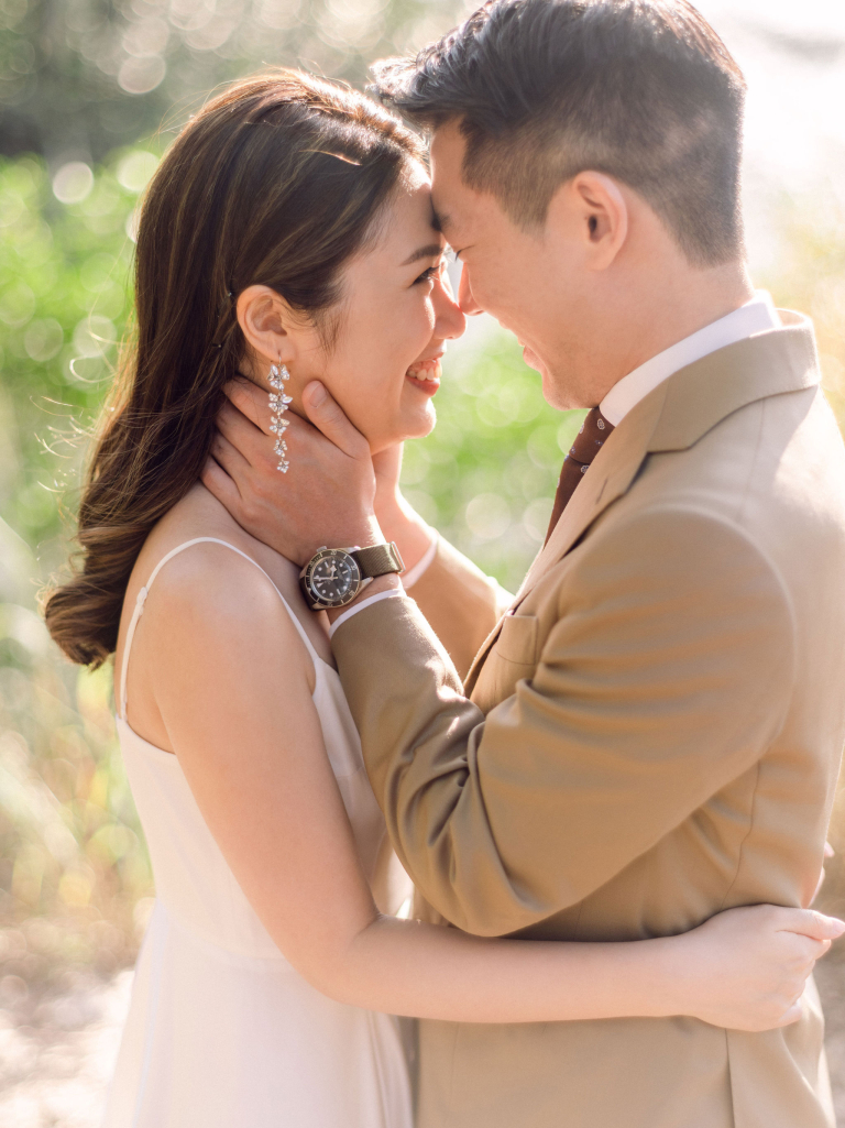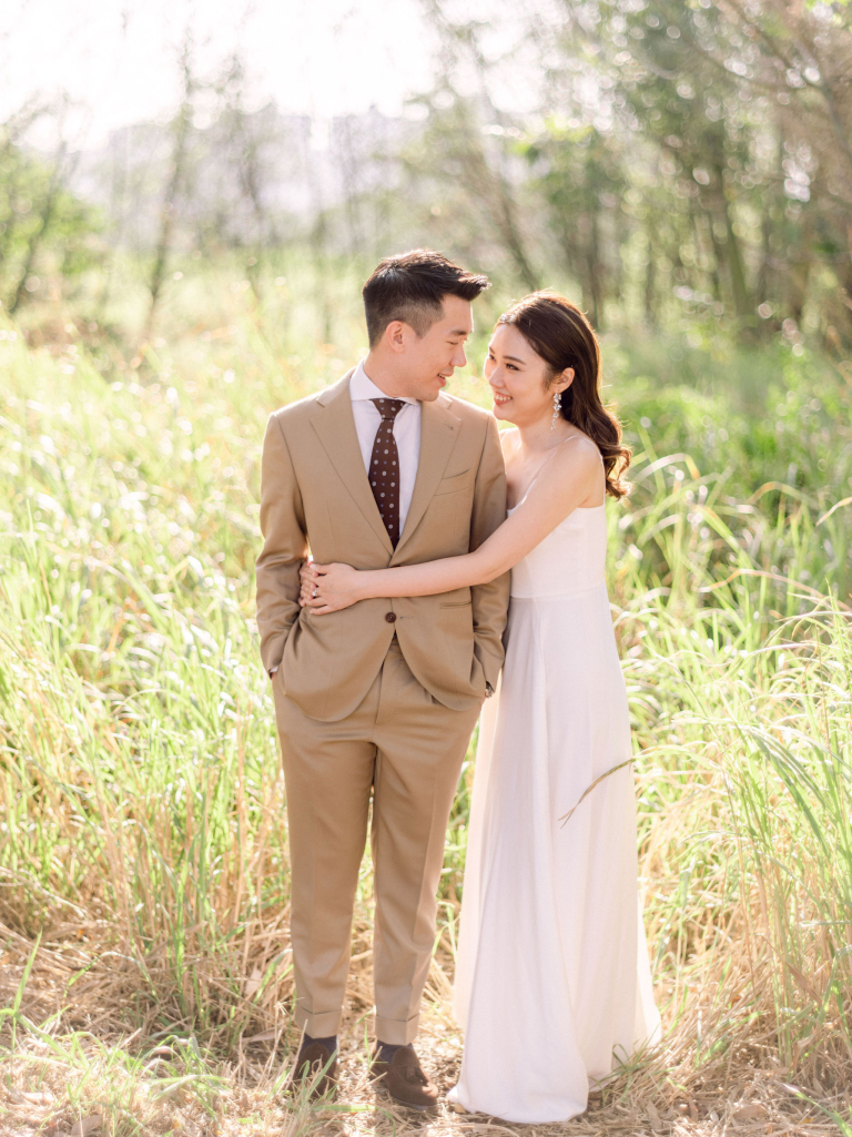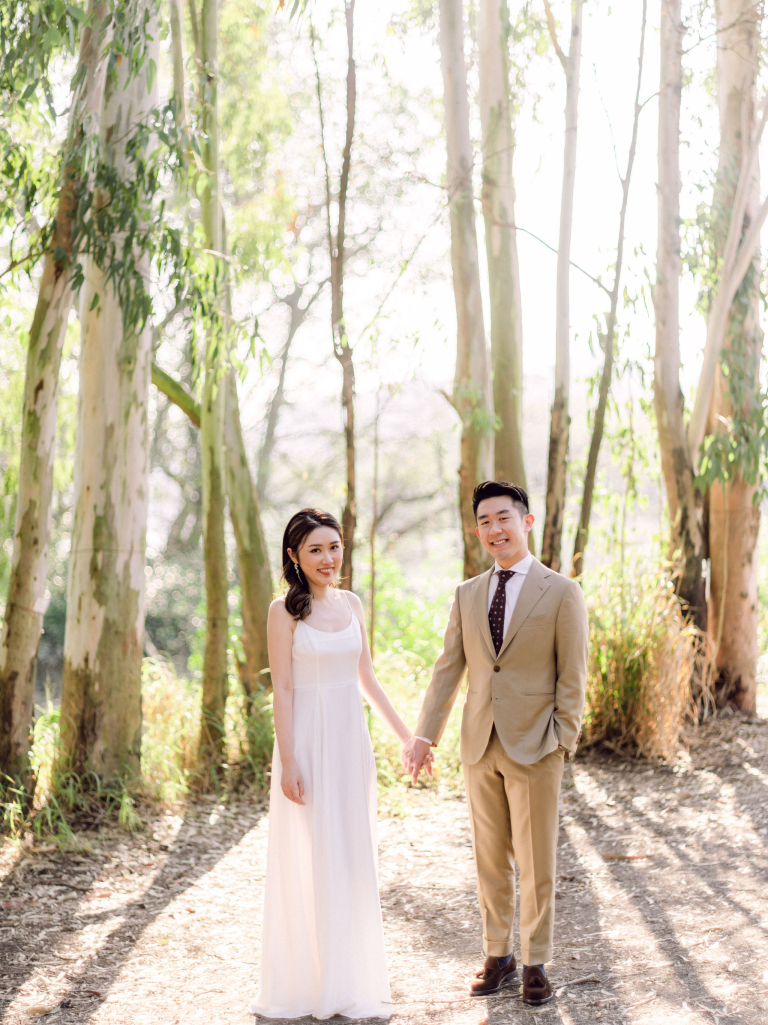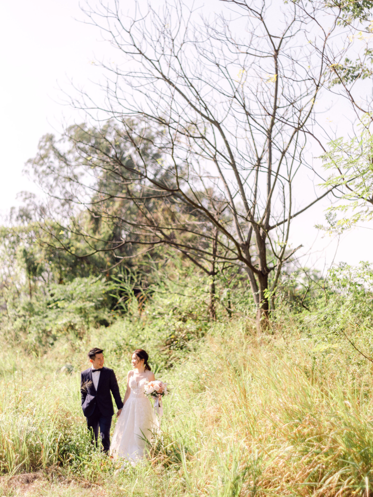 After the indoor session, we moved outside to capture some candid shots in the natural light. Jac and Caspar's love shone brightly against the backdrop of greenery and open skies. Then, Jac changed into a stunning white wedding gown, and Caspar looked equally handsome in his suit. We headed to a nearby forest, where the sunlight filtering through the trees created a magical ambiance. The couple walked hand in hand, with the sunlight casting a soft glow on them, making every moment picture-perfect.