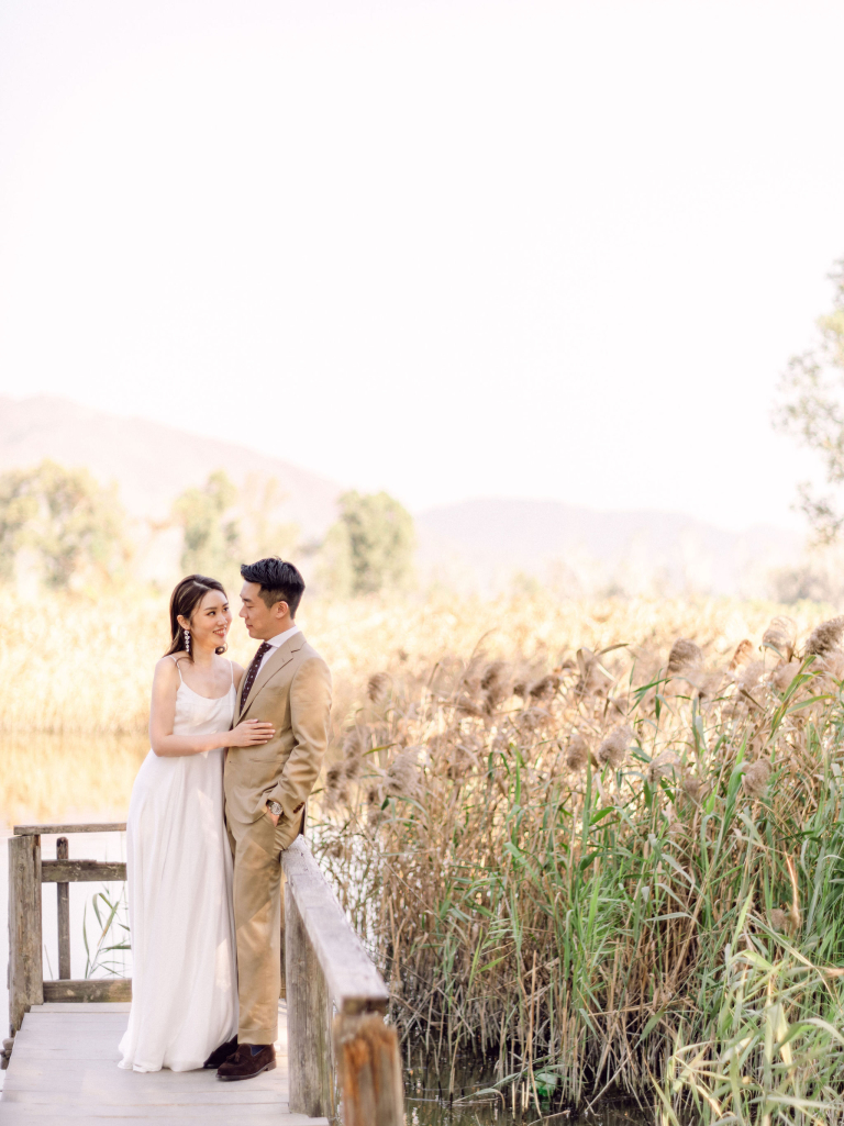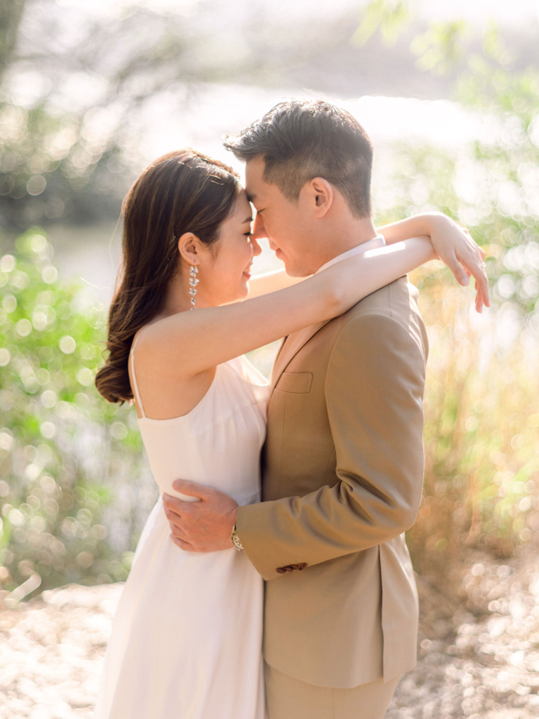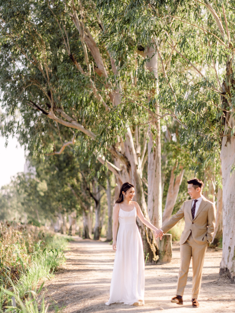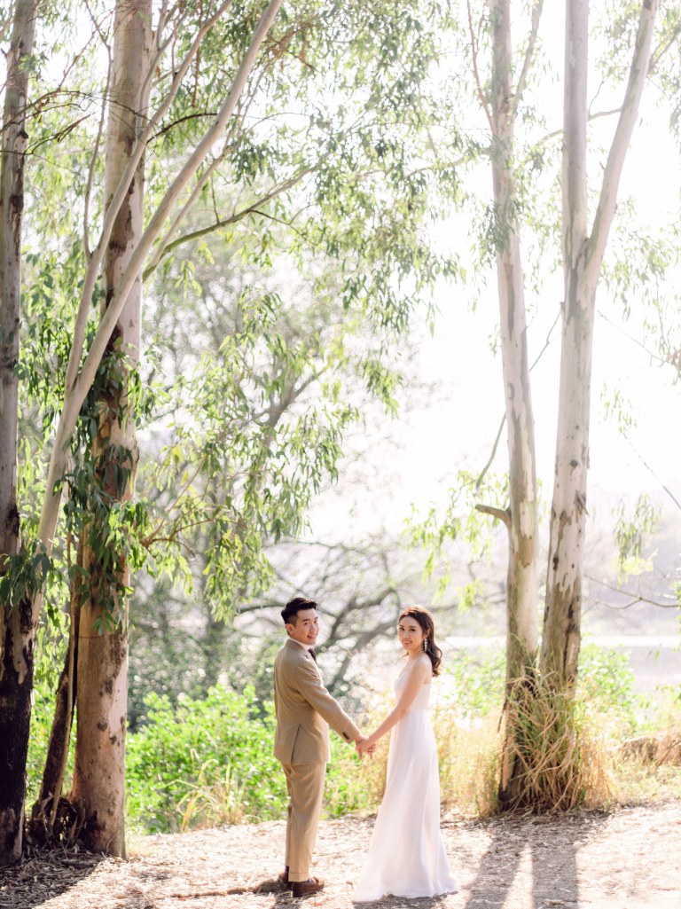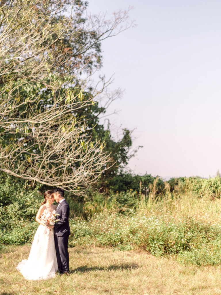 After the indoor session, we moved outside to capture some candid shots in the natural light. Jac and Caspar's love shone brightly against the backdrop of greenery and open skies. Then, Jac changed into a stunning white wedding gown, and Caspar looked equally handsome in his suit. We headed to a nearby forest, where the sunlight filtering through the trees created a magical ambiance. The couple walked hand in hand, with the sunlight casting a soft glow on them, making every moment picture-perfect.