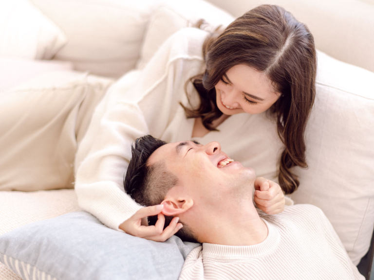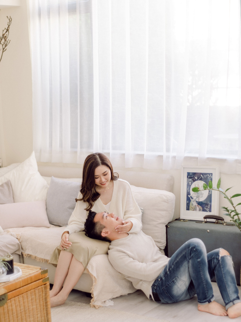 Jac and Caspar's pre-wedding photoshoot was a beautiful journey through different settings, each capturing their love story uniquely. We began in their home, where they wore casual outfits, allowing us to capture their everyday moments. The cozy indoor space was filled with warmth and affection as they shared their daily routines, laughter, and tender moments, creating an intimate and genuine atmosphere.