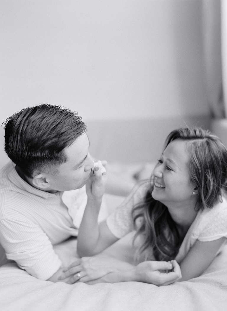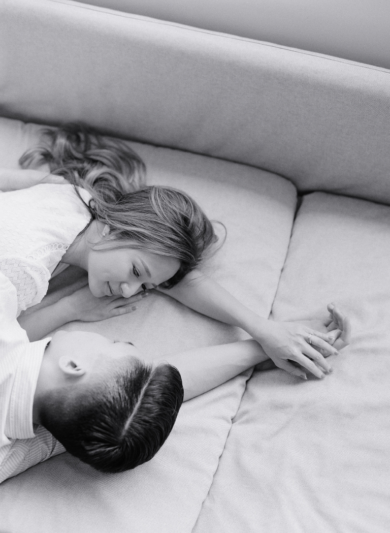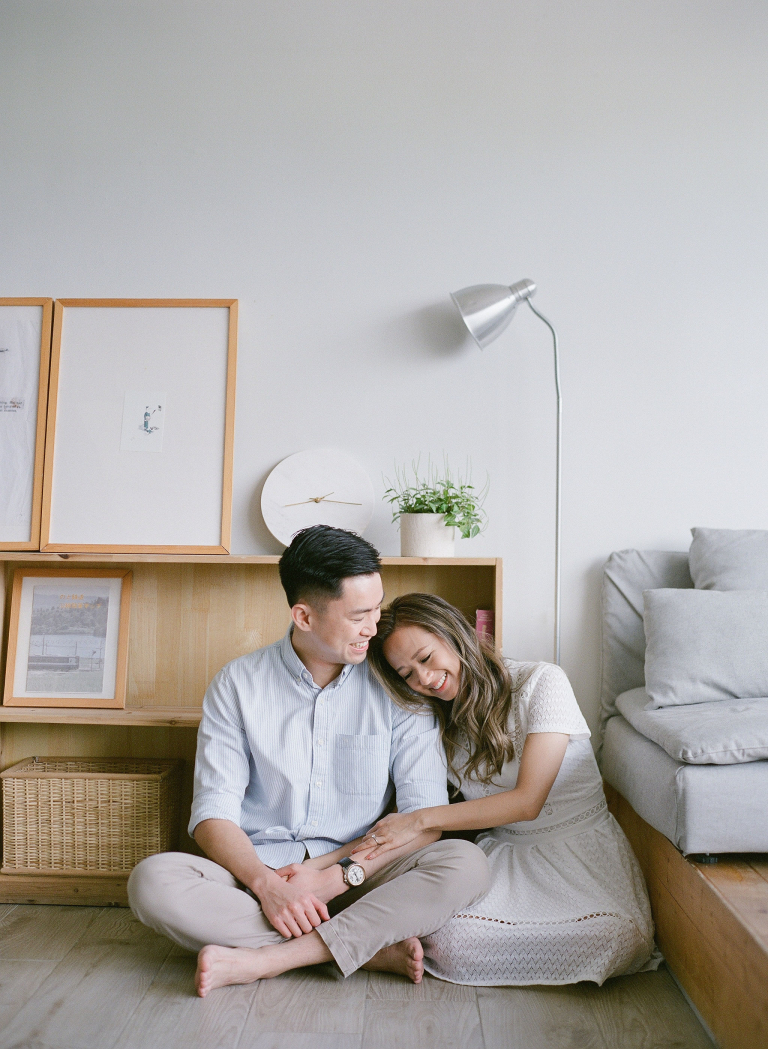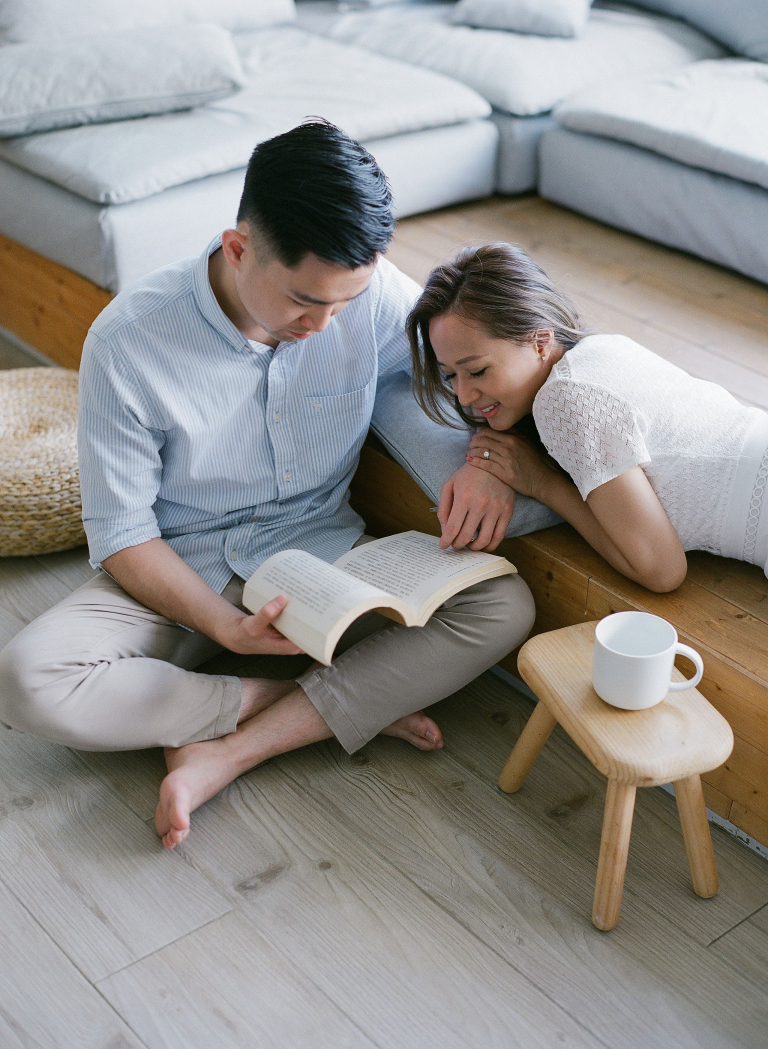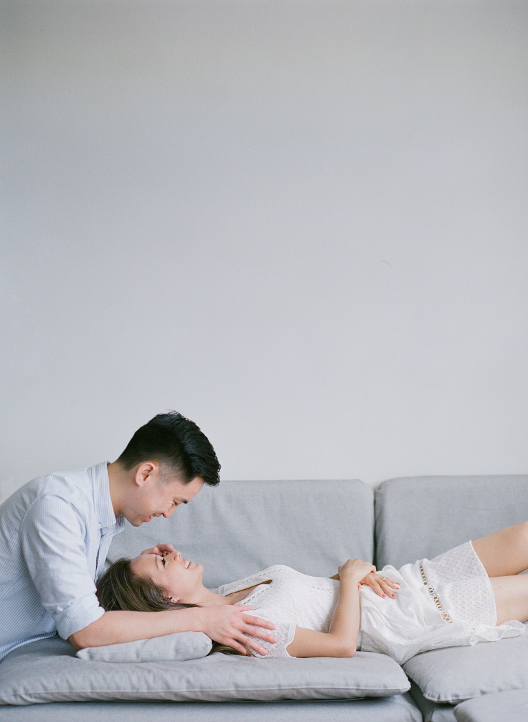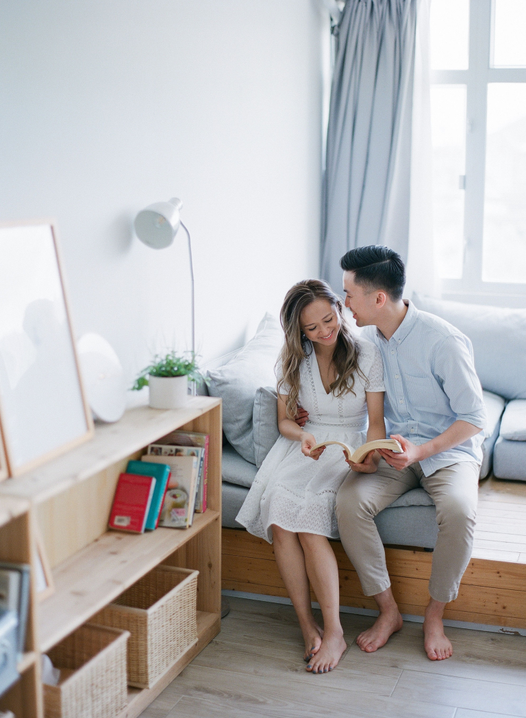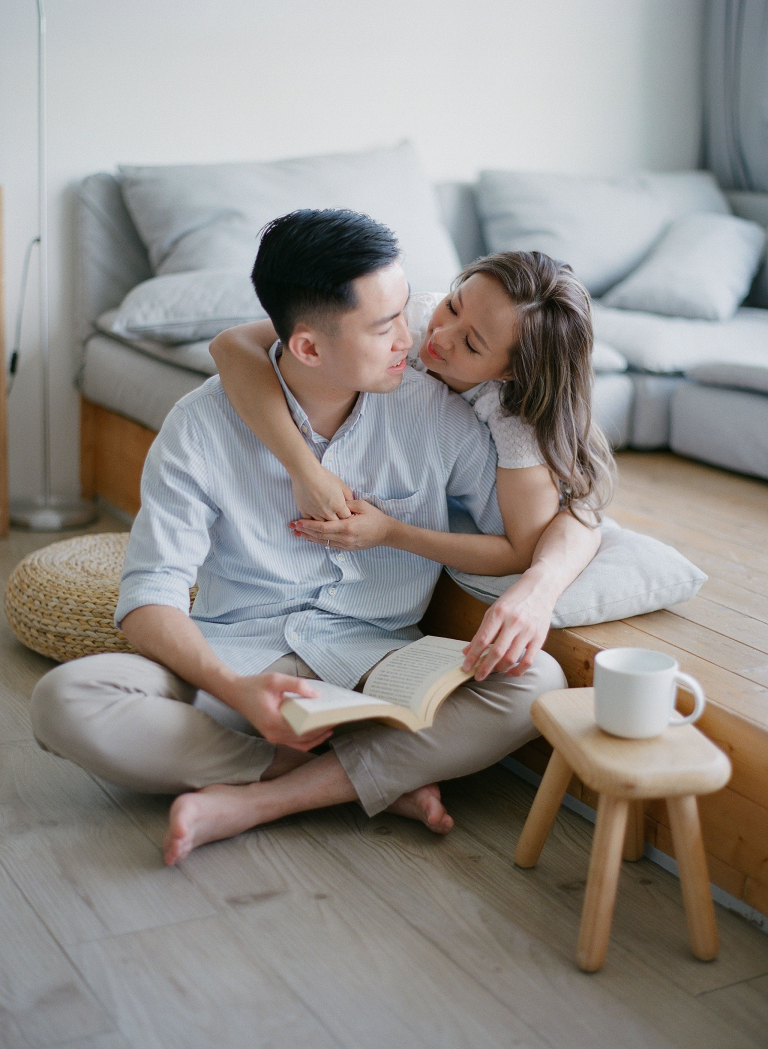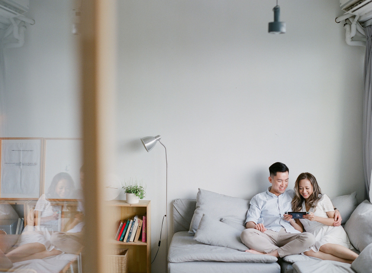 Jessie and Dennis's pre-wedding shoot was a delightful experience that felt like capturing scenes from a romantic movie. We started indoors, with the couple dressed in casual clothes, enjoying their daily routines. Their home was filled with warmth and laughter as they shared playful moments and tender embraces. This intimate setting allowed us to capture the genuine love and comfort they find in each other, making for some truly heartfelt photos.