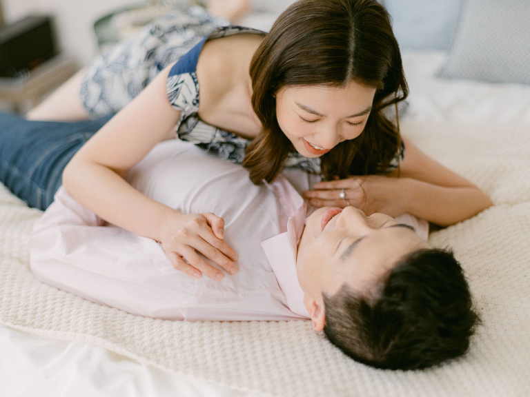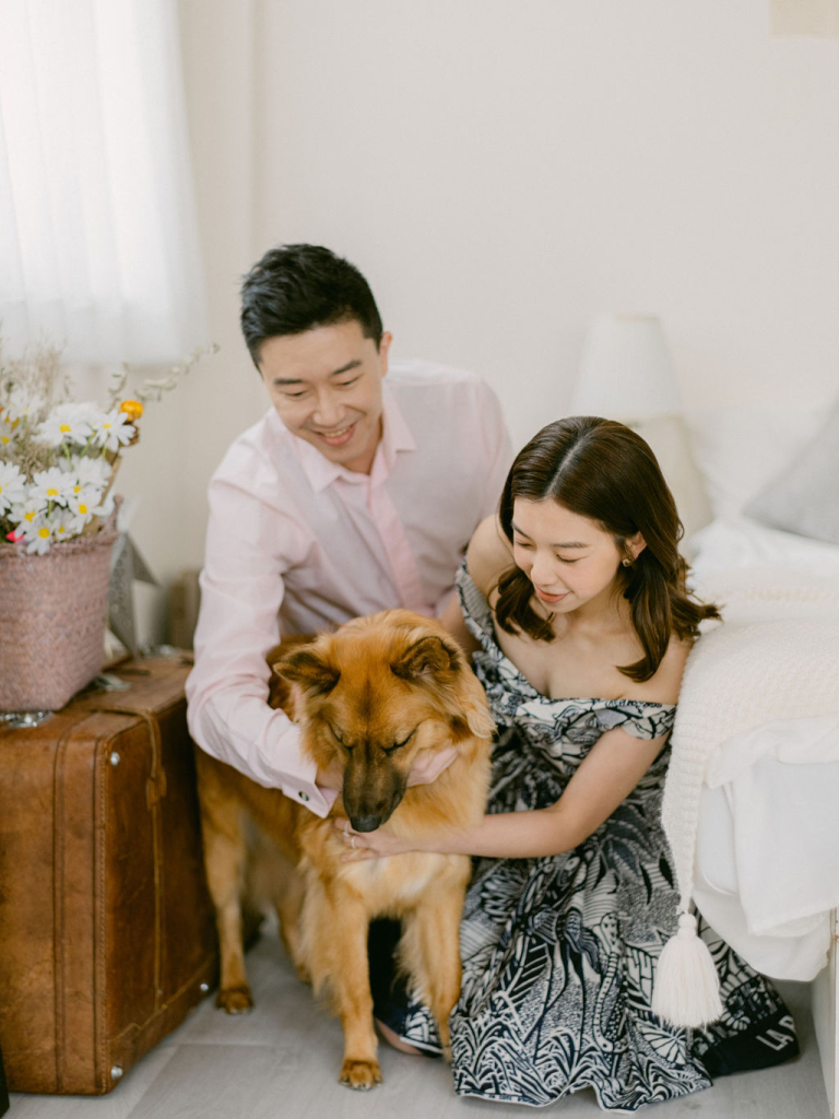 Photographing Karen and Alfred's pre-wedding shoot was a delightful and heartwarming experience for my team and me. We began the day indoors, capturing intimate and everyday moments. The couple’s home was filled with warmth and affection, especially when they interacted with their beloved dog. These candid moments, with Karen and Alfred hugging their pet and sharing laughs, were beautifully captured through our lenses, highlighting their deep bond and genuine love for each other.